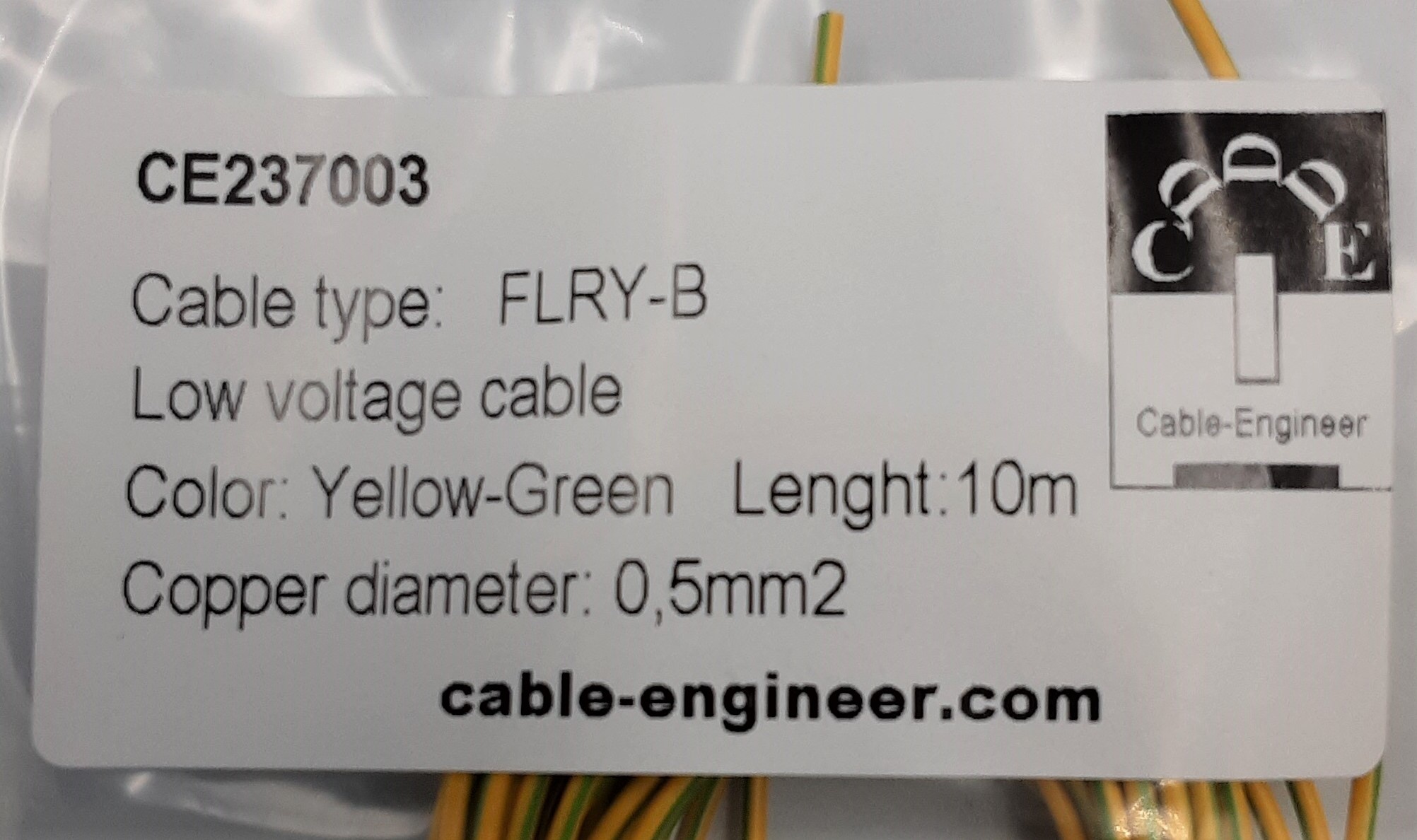 De code FLRY-B staat voor: FL = Automotive kabel R= Gereduceerde dikte van de isolatie Y= Isolatie van PVC B= asymmetrisch gebundelde geleiders (dunne koperen draden). 0,50mm2 FLRY-B kabel bestaat uit 16 asymmetrisch gebundelde koperen draden wat zorgt voor een extra hoge flexibiliteit en optimale geleiding.