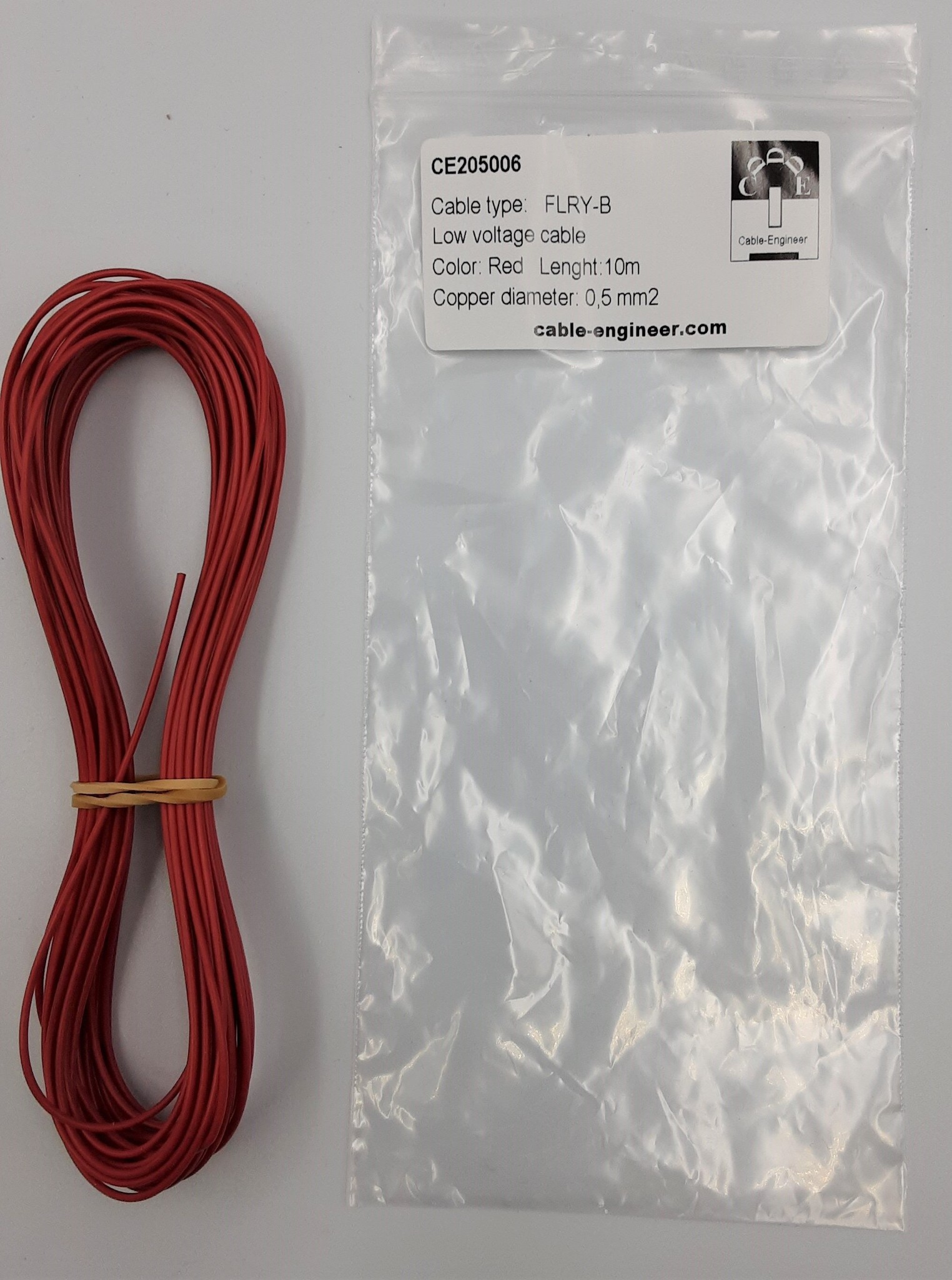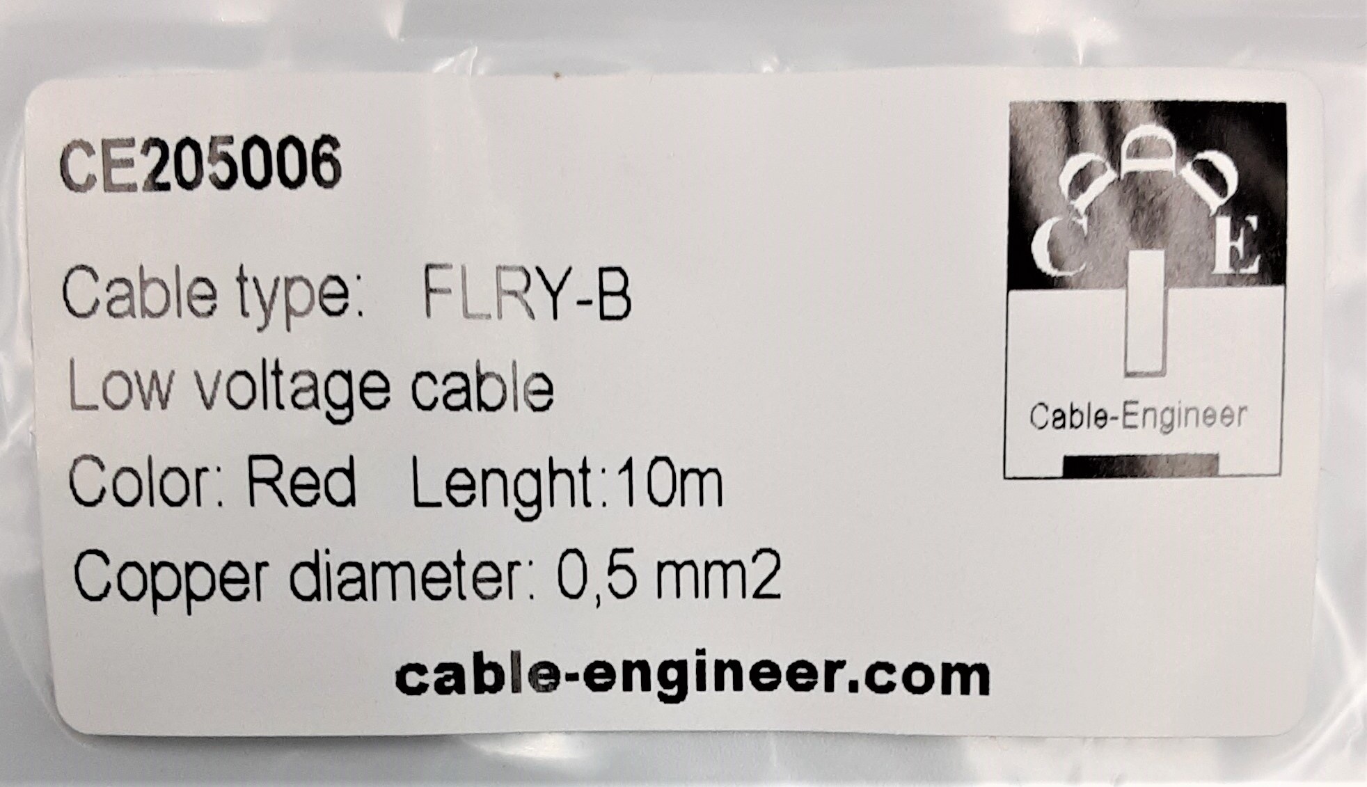 De code FLRY-B staat voor: FL = Automotive kabel R= Gereduceerde dikte van de isolatie Y= Isolatie van PVC B= asymmetrisch gebundelde geleiders (dunne koperen draden). 0,50mm2 FLRY-B kabel bestaat uit 16 asymmetrisch gebundelde koperen draden wat zorgt voor een extra hoge flexibiliteit en optimale geleiding.