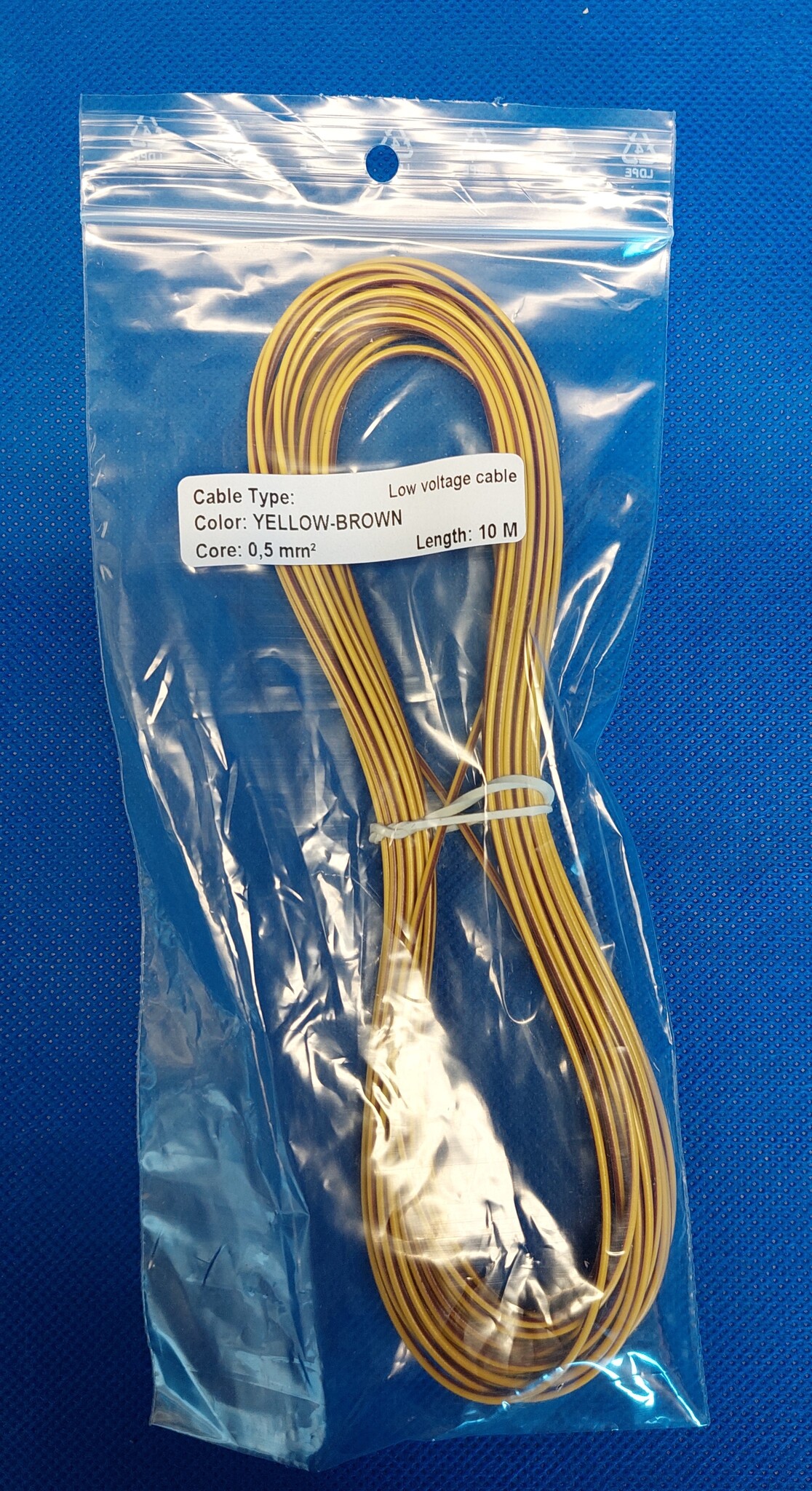 10 meter hand gerold in afsluitbare plastic zak met product nummer, afmeting, kleur en type van de kabel.