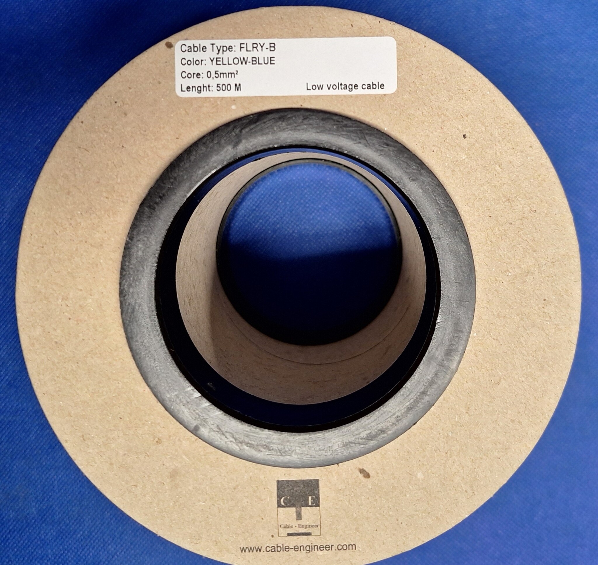 0,50mm2 - FLRY-B kabel - 500 meter op rol - Kleur Geel / Blauw