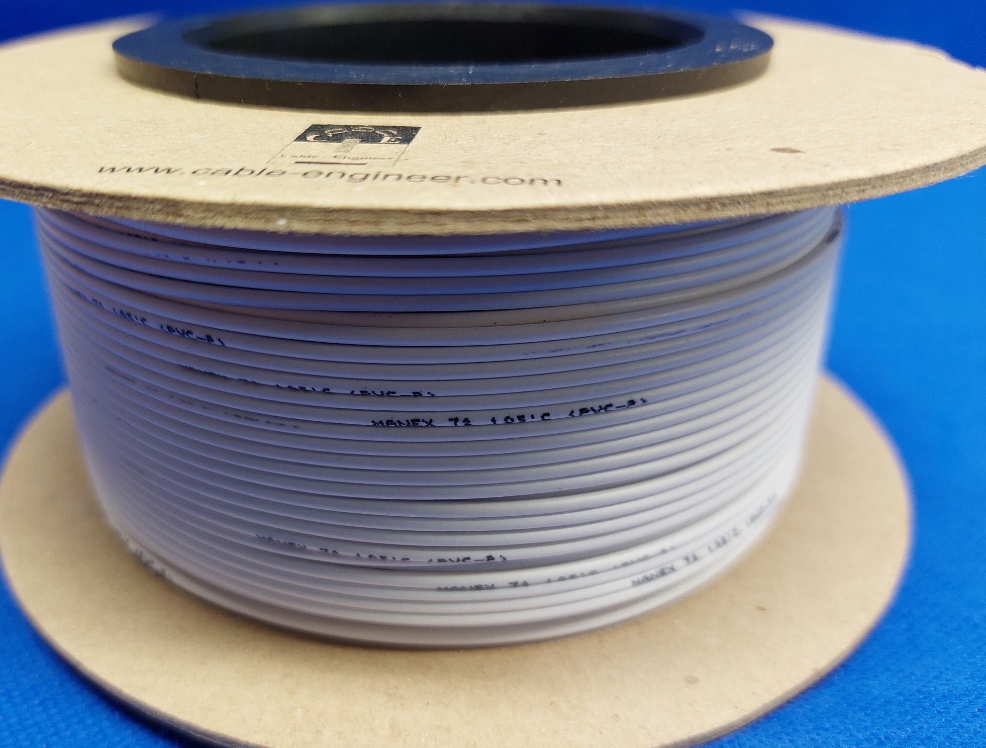 Witte kabel met opdruk van fabrikant: Manex 72 - 105°C - in zwart bedrukt op kabel