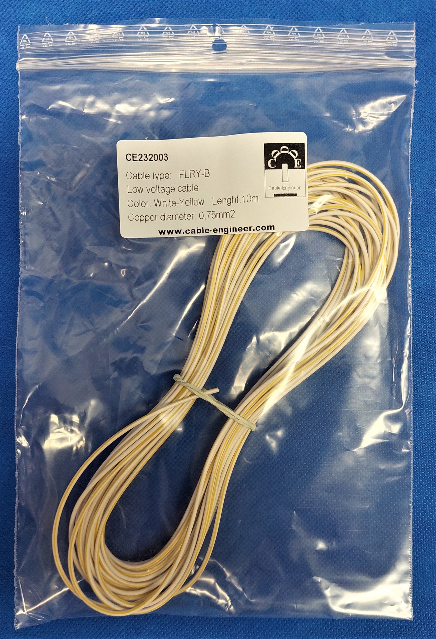 0,75 mm2 FLRY-B kabel verpakt per 10 meter in de kleur Geel/Wit