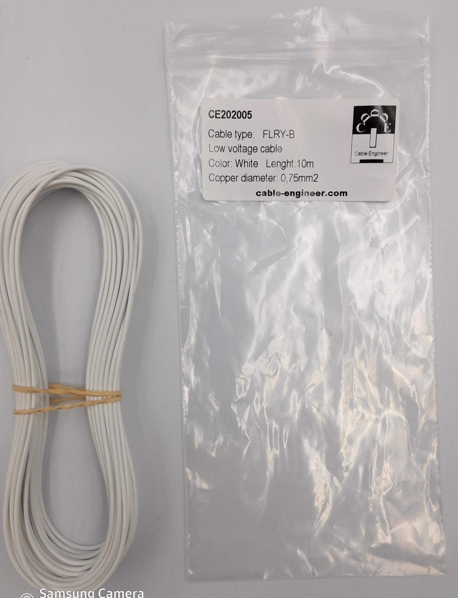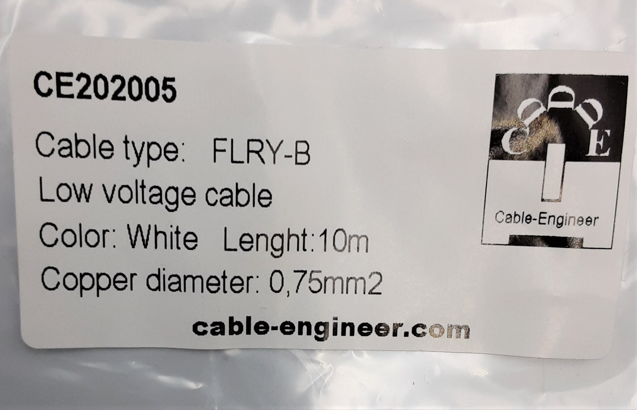 0,75 mm2 FLRY-B kabel verpakt per 10 meter in de kleur WIT