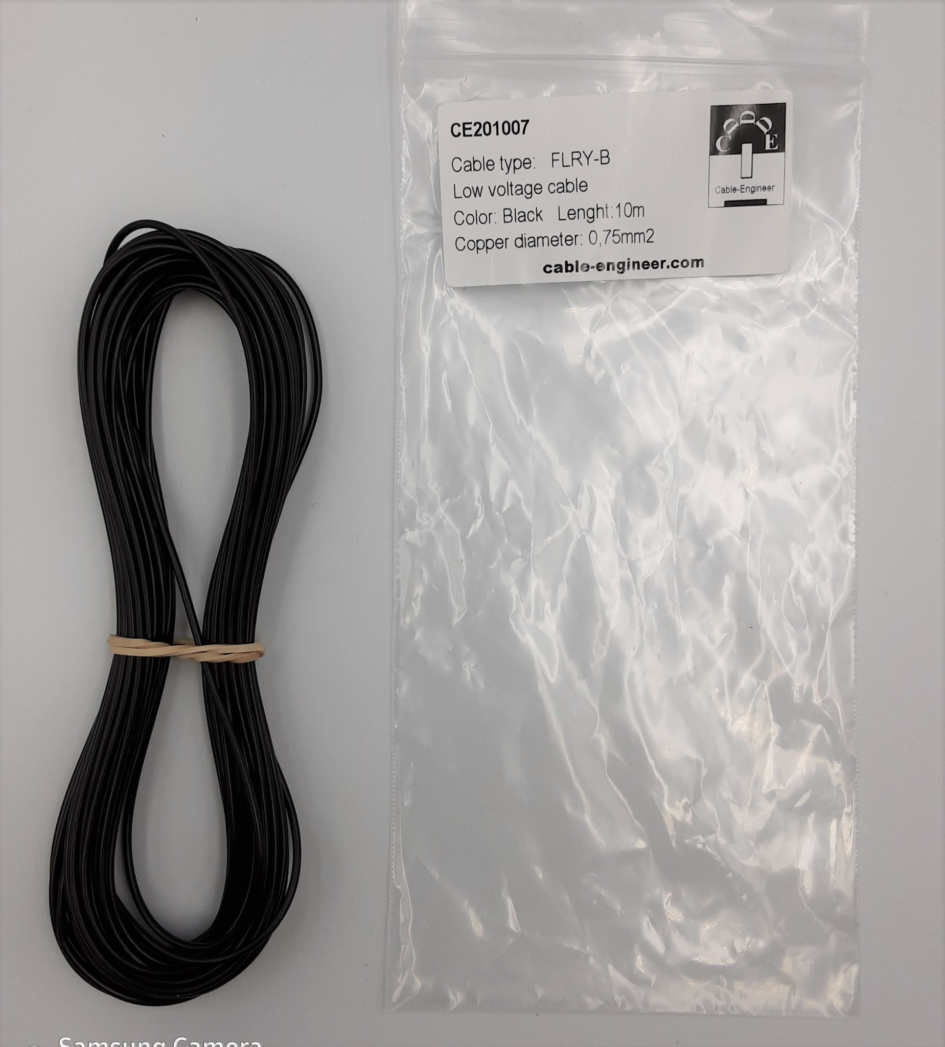 0,75 mm2 FLRY-B kabel verpakt per 10 meter in de kleur ZWART