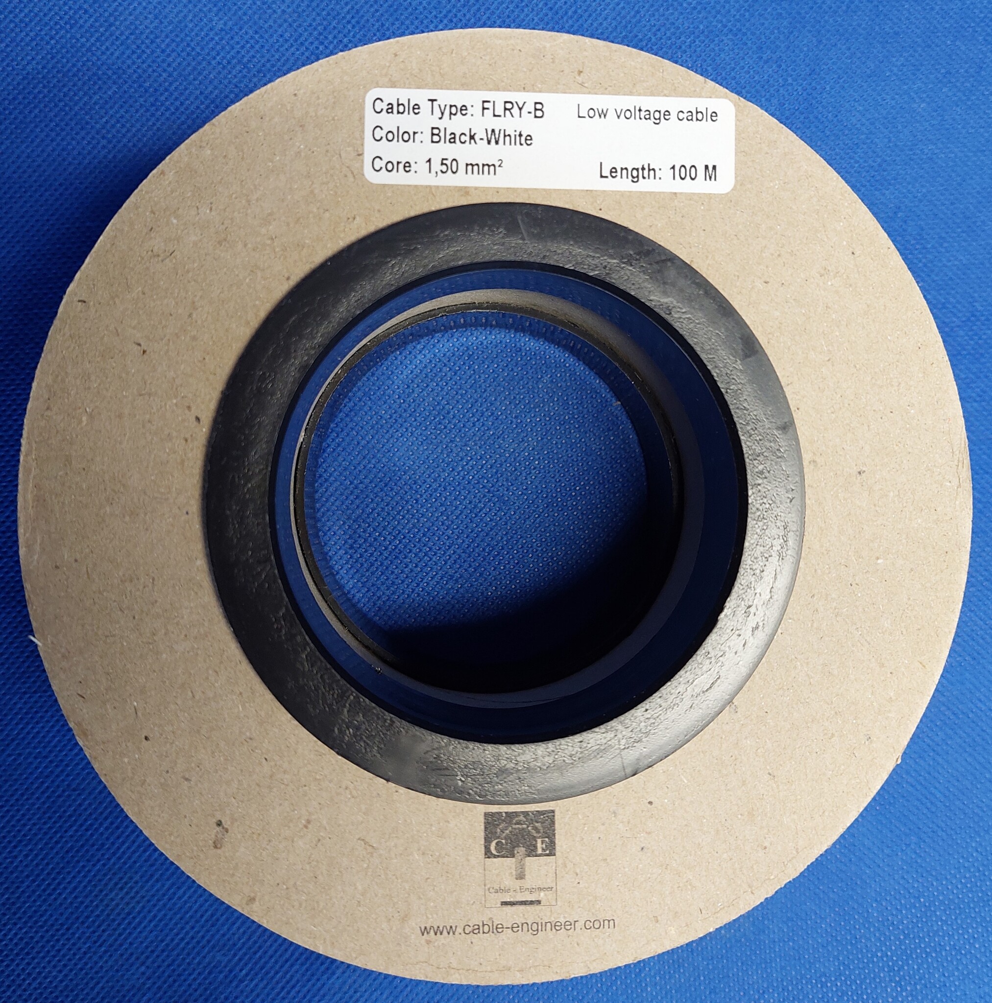 1,5mm2 FLRY-B snoer op rol met 100 meter in de kleur ZWART / WIT