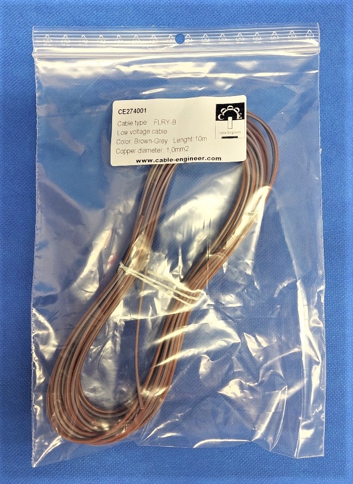10 meter hand gerold in afsluitbare plastic zak met vermelding van product nummer, afmeting, kleur en type van de kabel