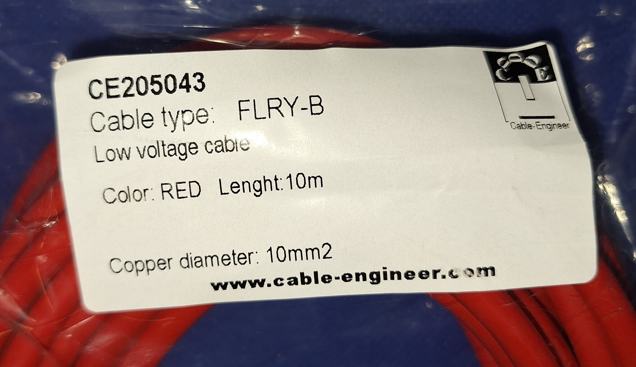 De code FLRY-B staat voor: FL = Automotive kabel R= Gereduceerde dikte van de isolatie Y= Isolatie van PVC B= asymmetrisch gebundelde geleiders (dunne koperen draden). 10,0mm2 FLRY-B kabel bestaat uit 80 asymmetrisch gebundelde koperen draden van 0,41mm per ader wat zorgt voor een extra hoge flexibiliteit en optimale geleiding.