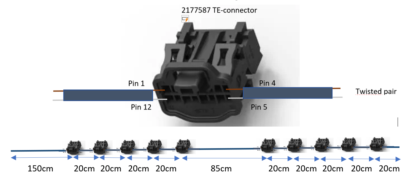 Pre-crimped Plug & Play set van TE connector 2177587-1 10x + 10x twisted pair cable, and instal.