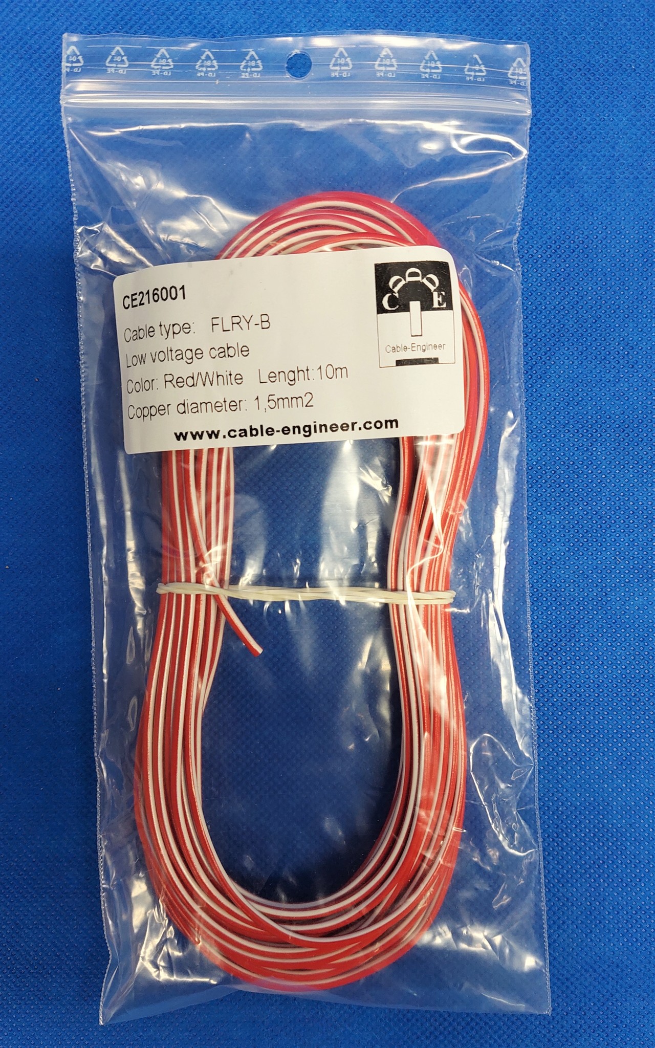 De code FLRY-B staat voor: FL = Automotive kabel R= Gereduceerde dikte van de isolatie Y= Isolatie van PVC B= asymmetrisch gebundelde geleiders (dunne koperen draden). 1,5mm2 FLRY-B kabel bestaat uit 30 asymmetrisch gebundelde koperen draden wat zorgt voor een extra hoge flexibiliteit en optimale geleiding.