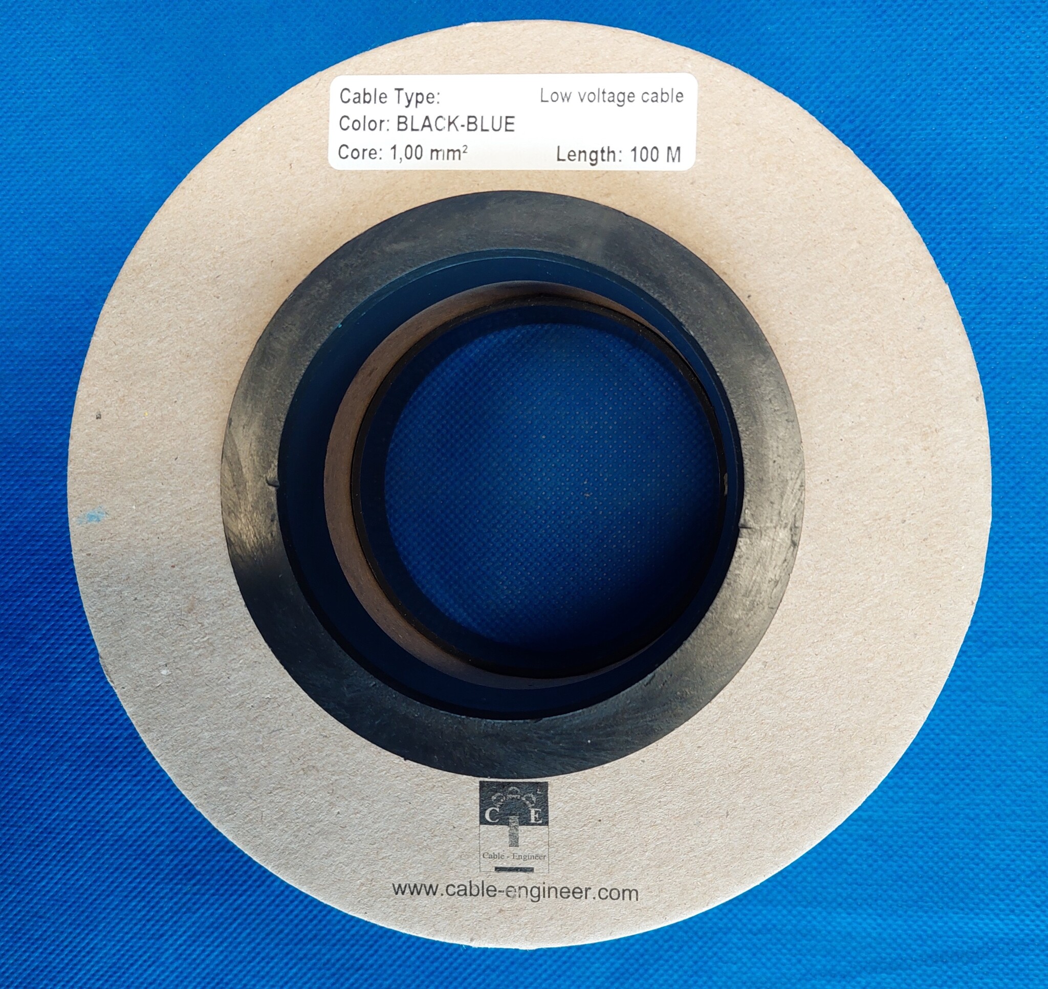 1,0 mm2 FLRY-B kabel op rol met 100 meter in de kleur ZWART / BLAUW