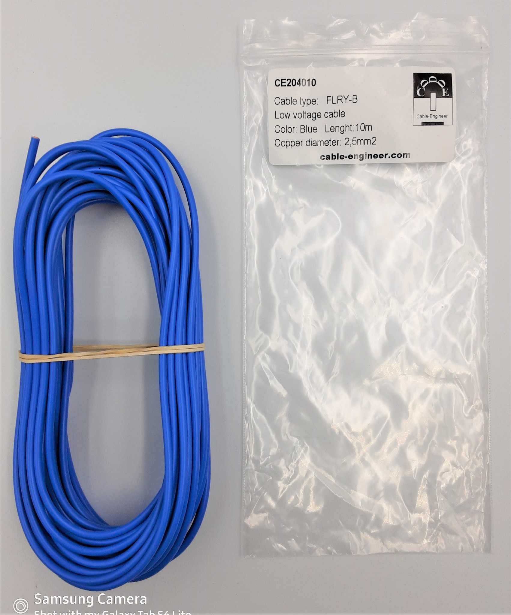 De code FLRY-B staat voor: FL = Automotive kabel R= Gereduceerde dikte van de isolatie Y= Isolatie van PVC B= asymmetrisch gebundelde geleiders (dunne koperen draden). 2,5mm2 FLRY-B kabel bestaat uit 50 asymmetrisch gebundelde koperen draden wat zorgt voor een extra hoge flexibiliteit en optimale geleiding.