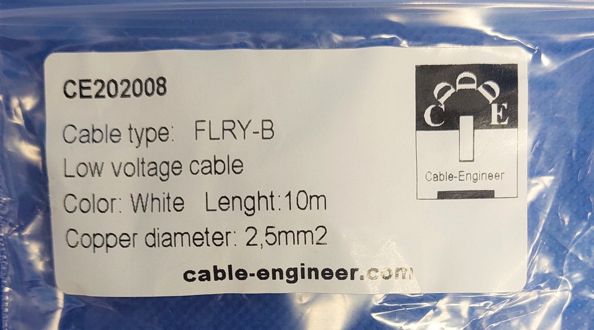 De code FLRY-B staat voor: FL = Automotive kabel R= Gereduceerde dikte van de isolatie Y= Isolatie van PVC B= asymmetrisch gebundelde geleiders (dunne koperen draden). 2,5mm2 FLRY-B kabel bestaat uit 50 asymmetrisch gebundelde koperen draden wat zorgt voor een extra hoge flexibiliteit en optimale geleiding.