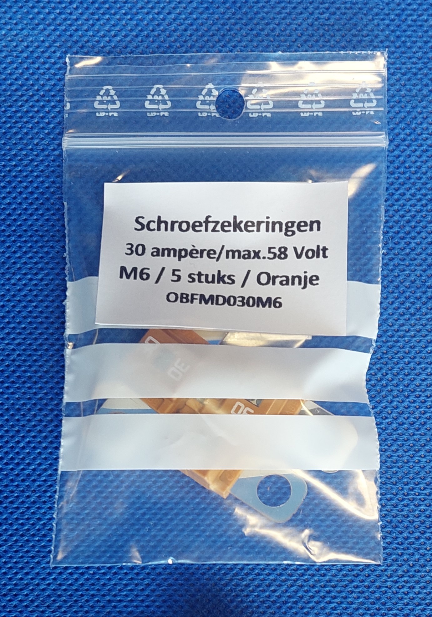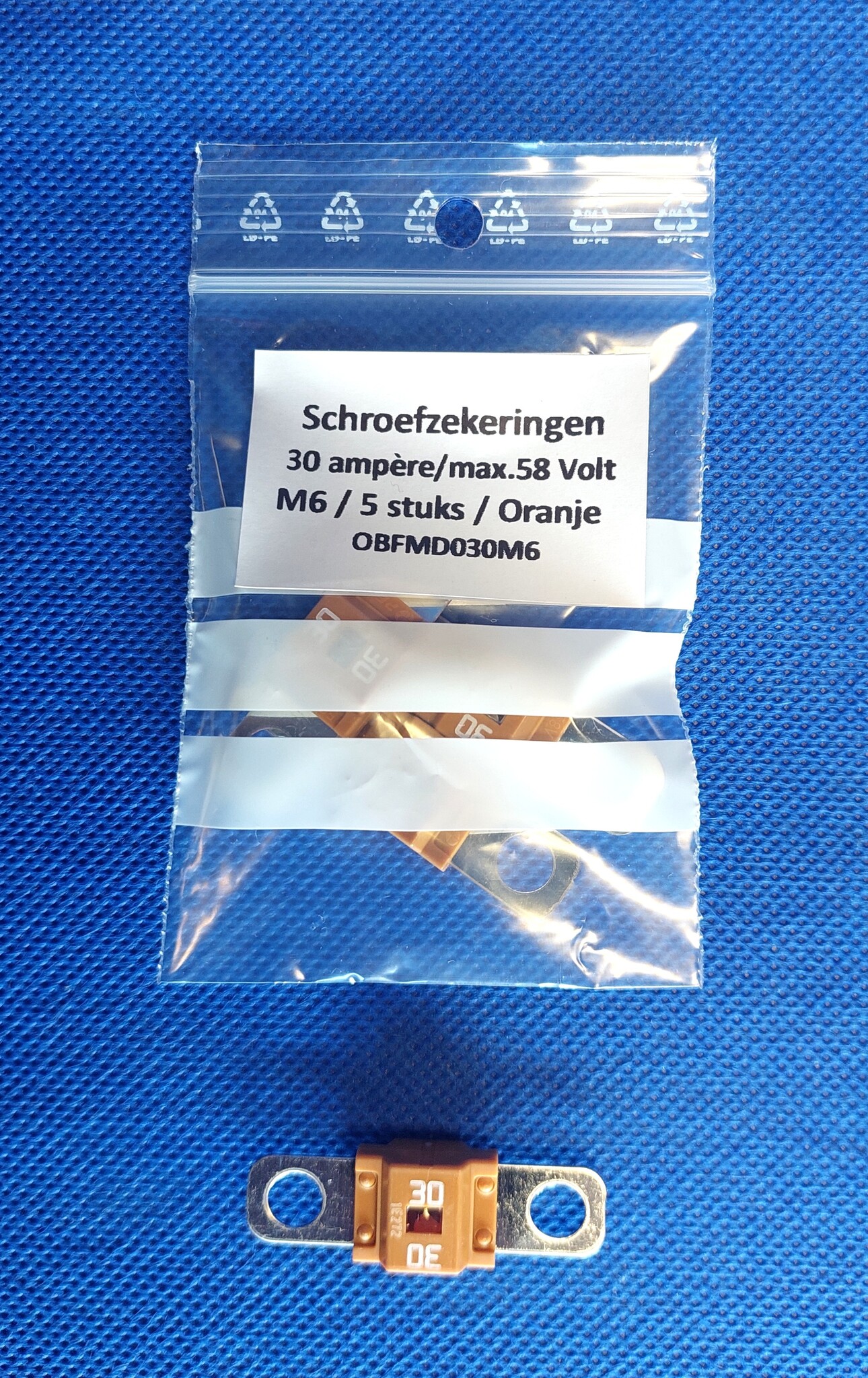 30 Ampère MidiOTO schroefzekering met M6 gaten op 30mm - max. 58Volt - Per 5 stuks