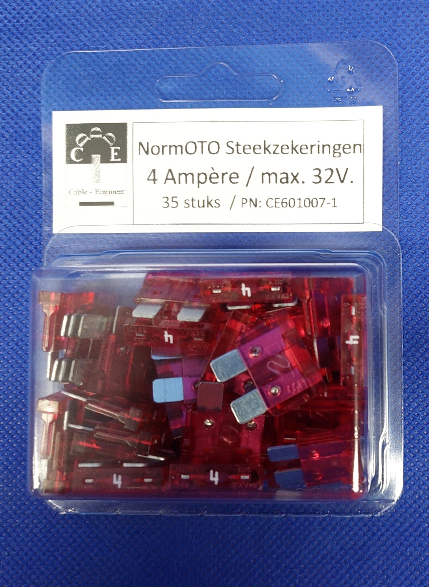 4 Ampére steekzekeringen - Max. 32V. - NormOTO - Donker Rood - 35 stuks