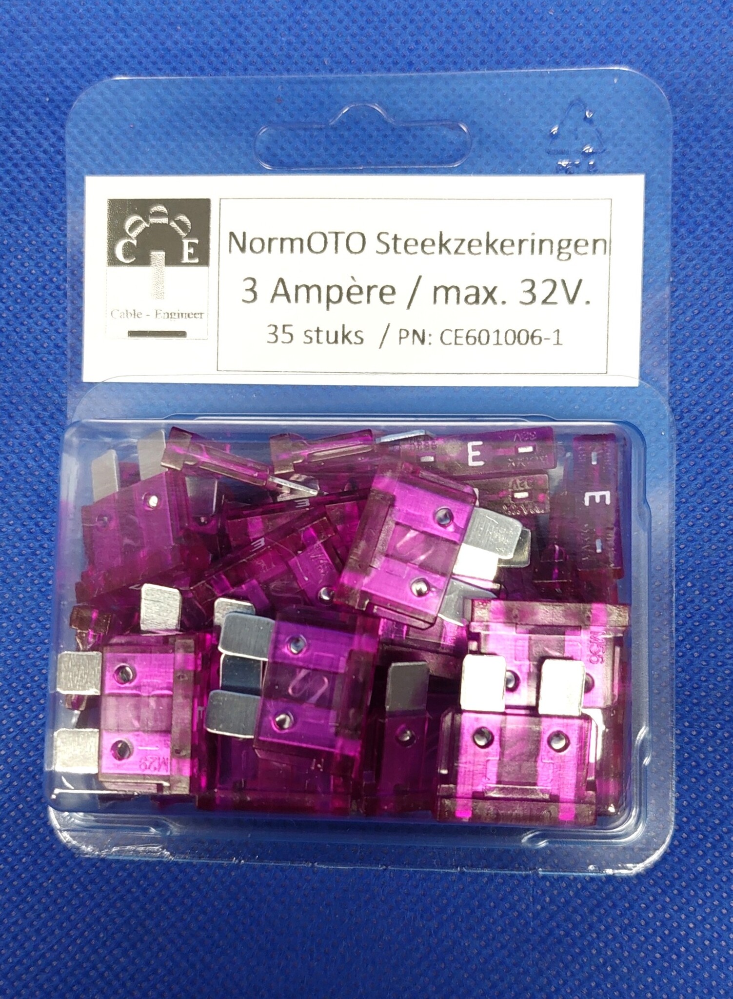 Steekzekeringen 3 Ampére - Max. 32 Volt - NormOTO - Paars - 35 stuks