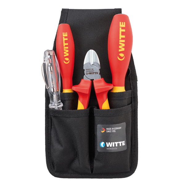 Professionele VDE Gordeltas met Kniptang, 2 Schroevendraaiers en spanningstester van Witte Werkzeuge GmBH