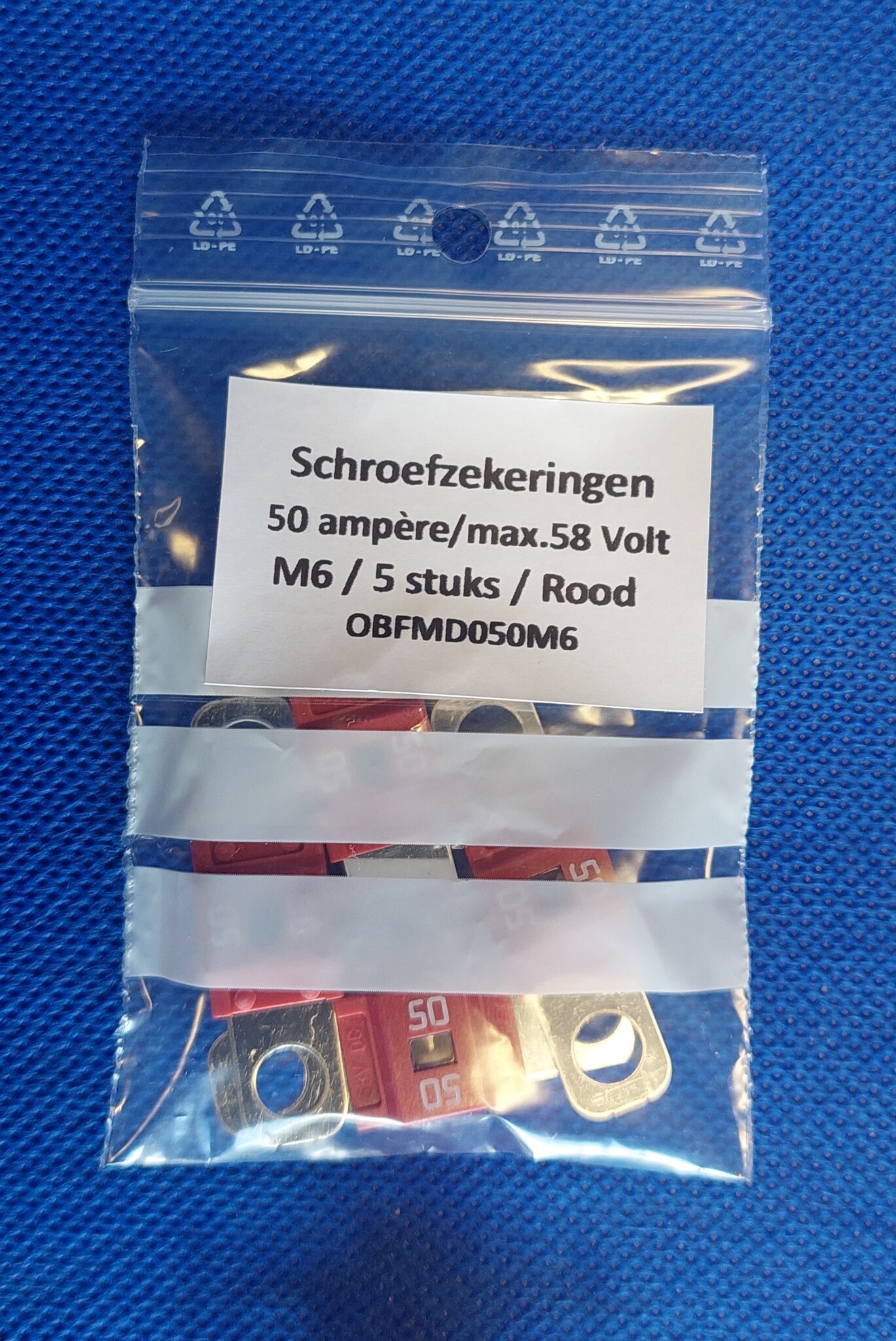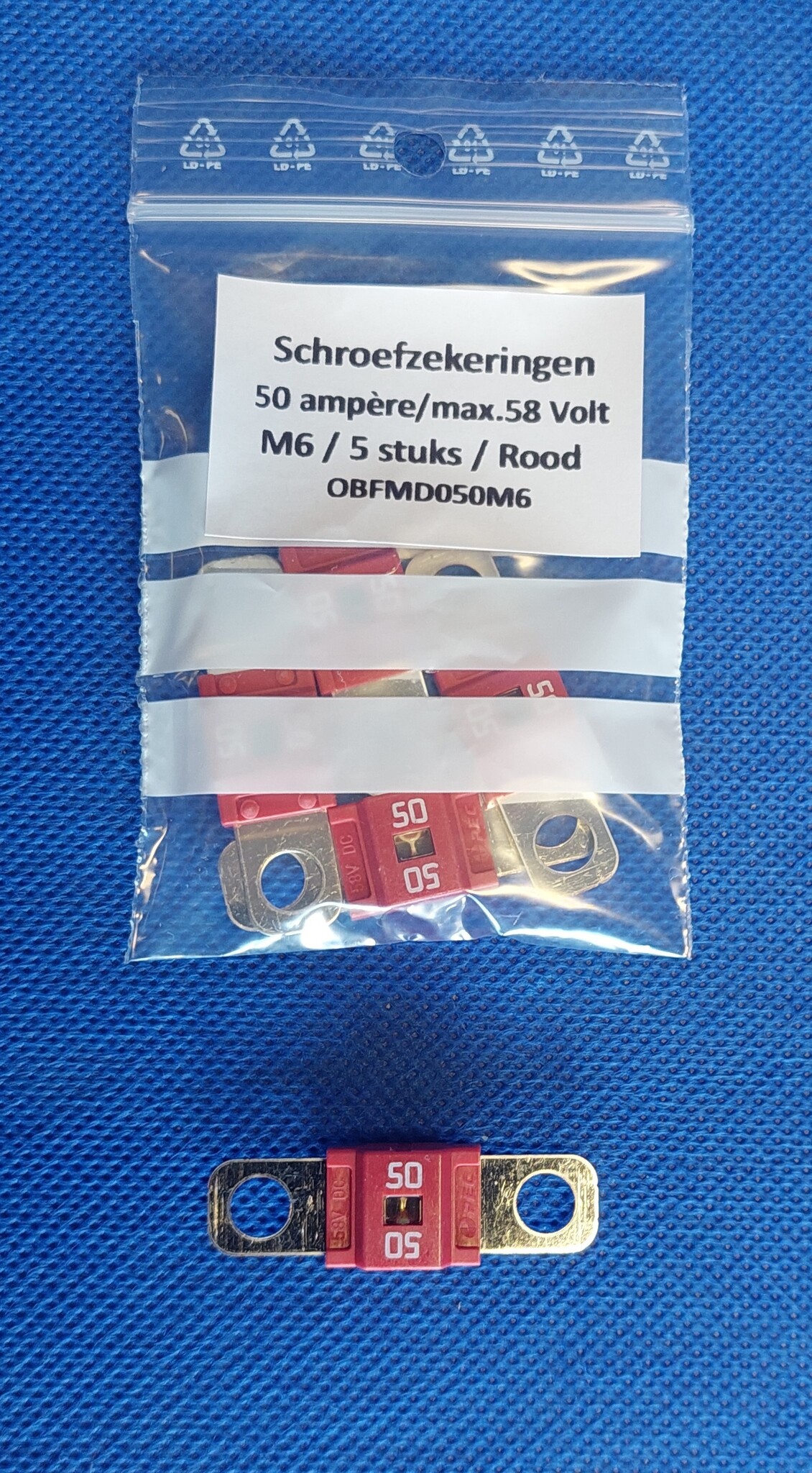 50 Ampère MidiOTO schroefzekering met M6 gaten op 30mm - max. 58Volt - Per 5 stuks