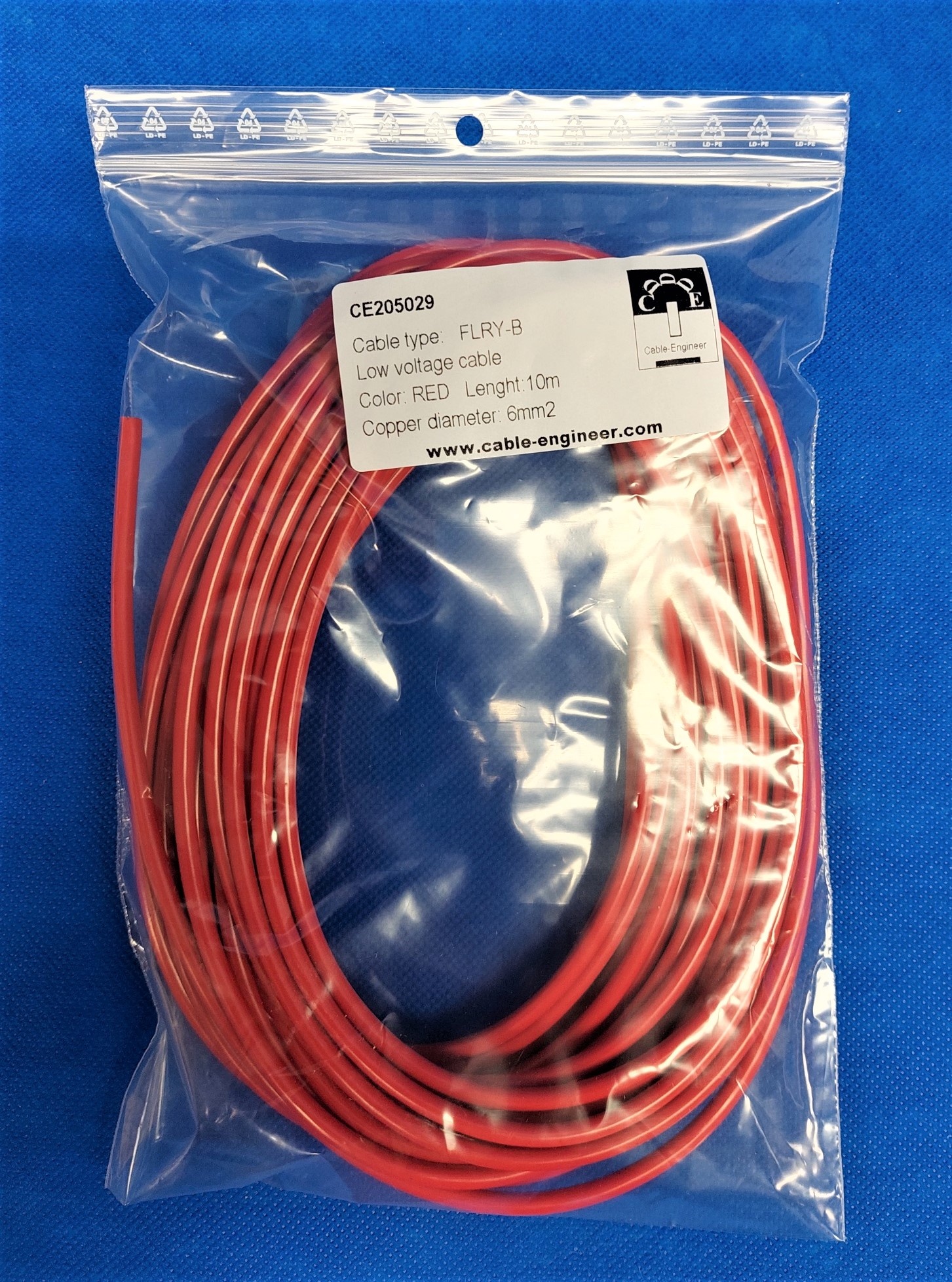 De code FLRY-B staat voor: FL = Automotive kabel R= Gereduceerde dikte van de isolatie Y= Isolatie van PVC B= asymmetrisch gebundelde geleiders (dunne koperen draden). 6,0mm2 FLRY-B kabel bestaat uit 84 asymmetrisch gebundelde koperen draden wat zorgt voor een extra hoge flexibiliteit en optimale geleiding.