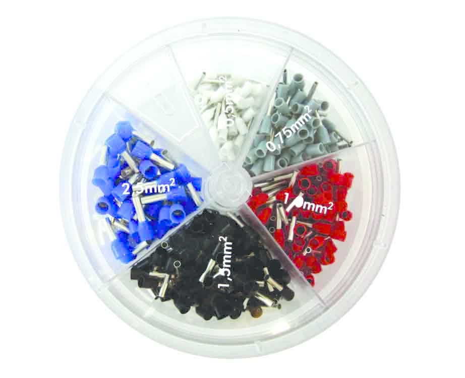 Adereindhulzen assortiment geïsoleerd 400 stuks van 0,5 t/m 2,5mm2 DIN 46228/4