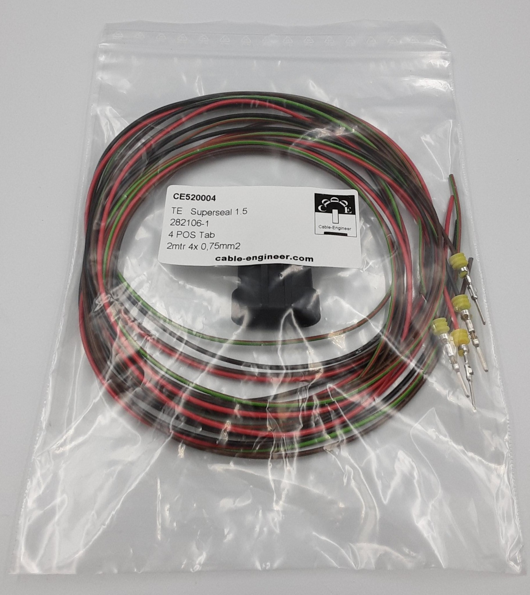 - 1x AMP Superseal 1.5 Tab (vrouw) 4-Pos. connector (TE pn: 282106-1)
