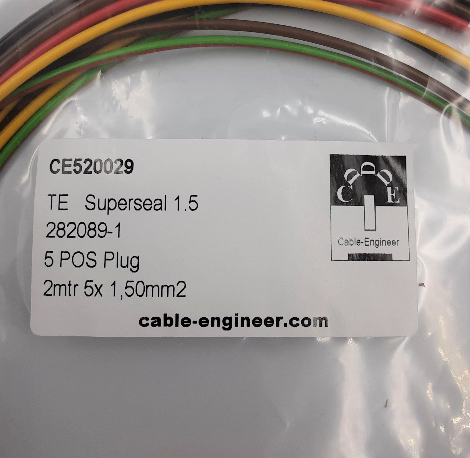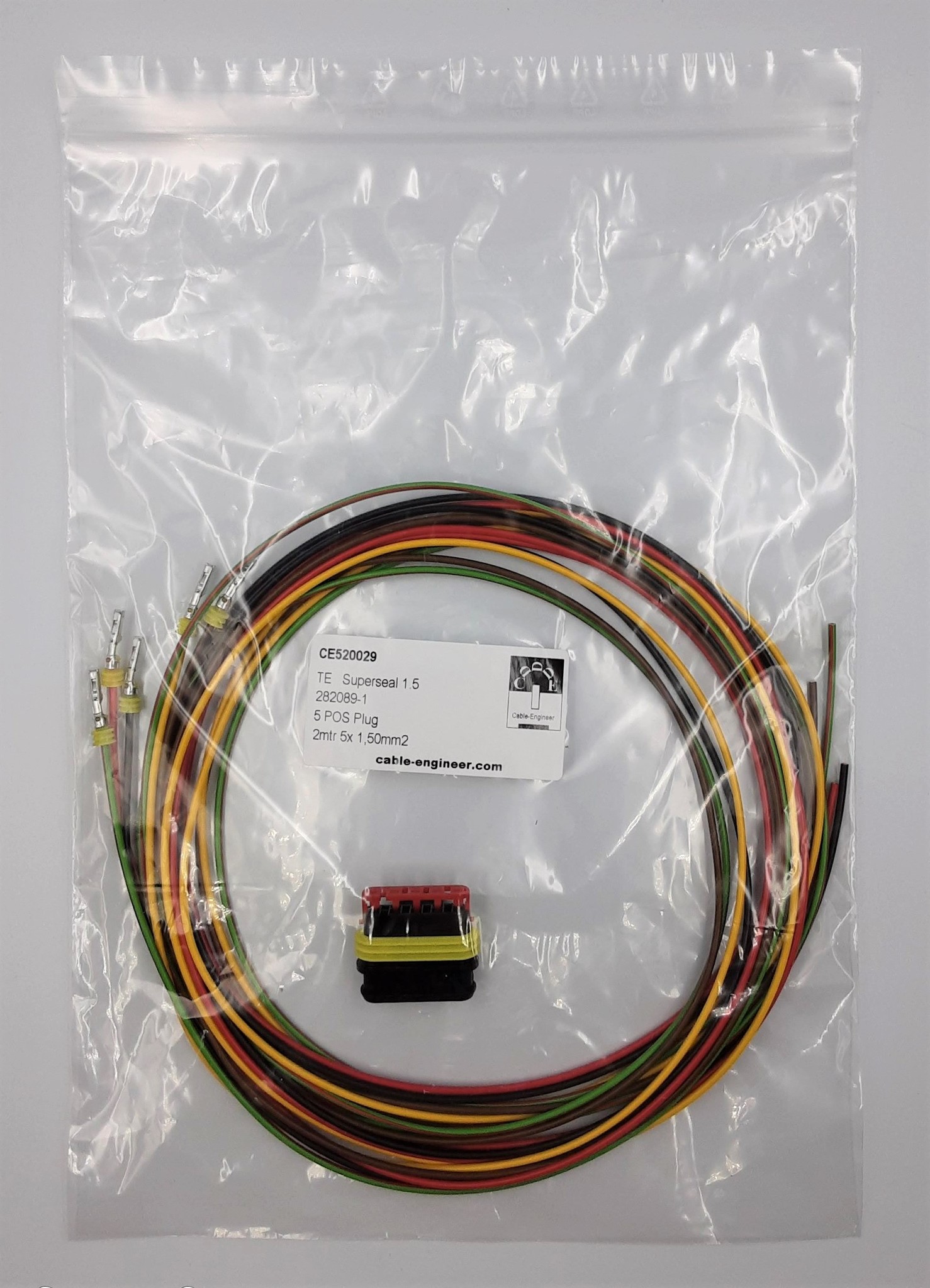 AMP Superseal 1.5 Pigtail-set met 5-Pos. Plug (man) connector + 5x 2m. FLRY-B - 1,5mm2