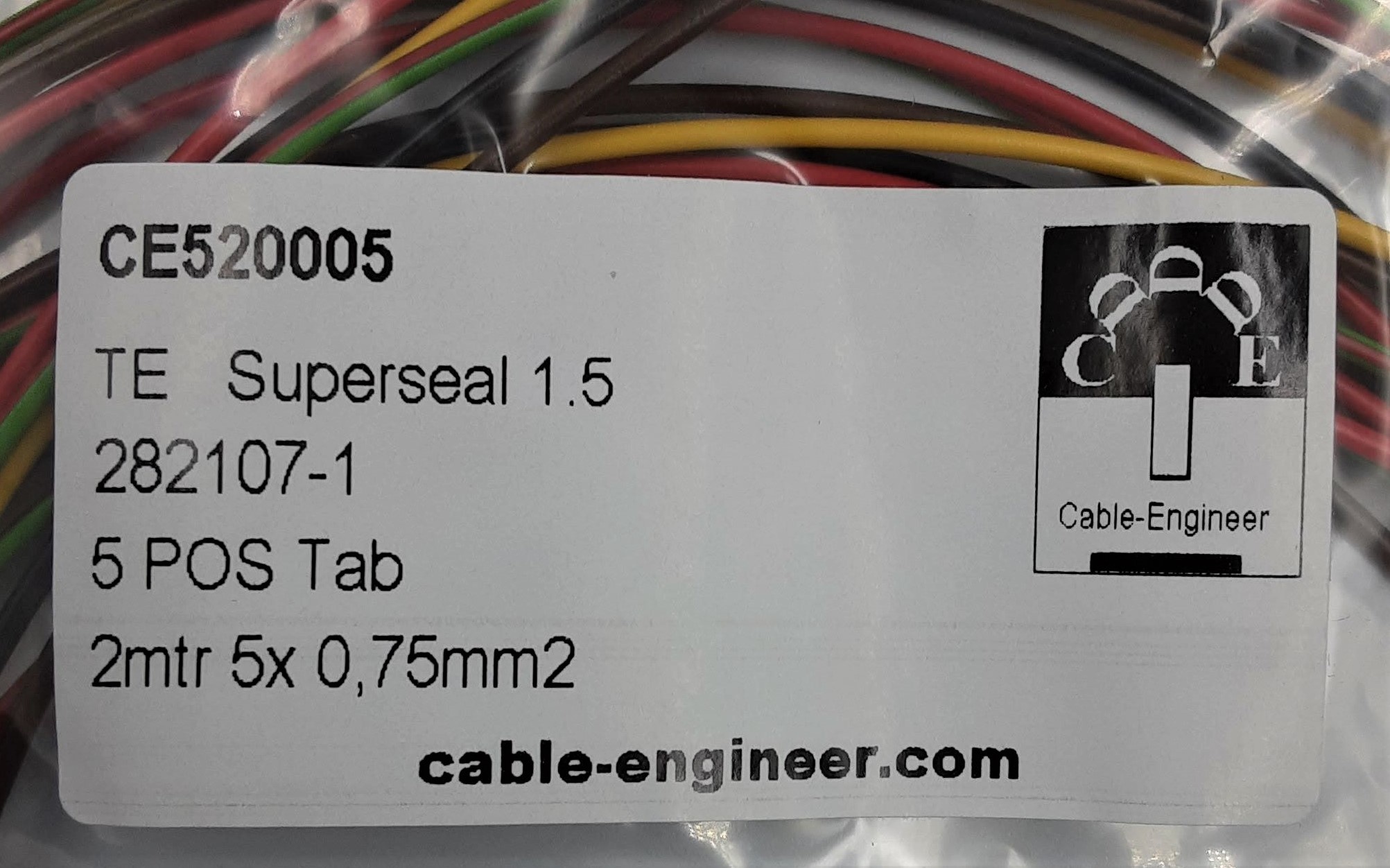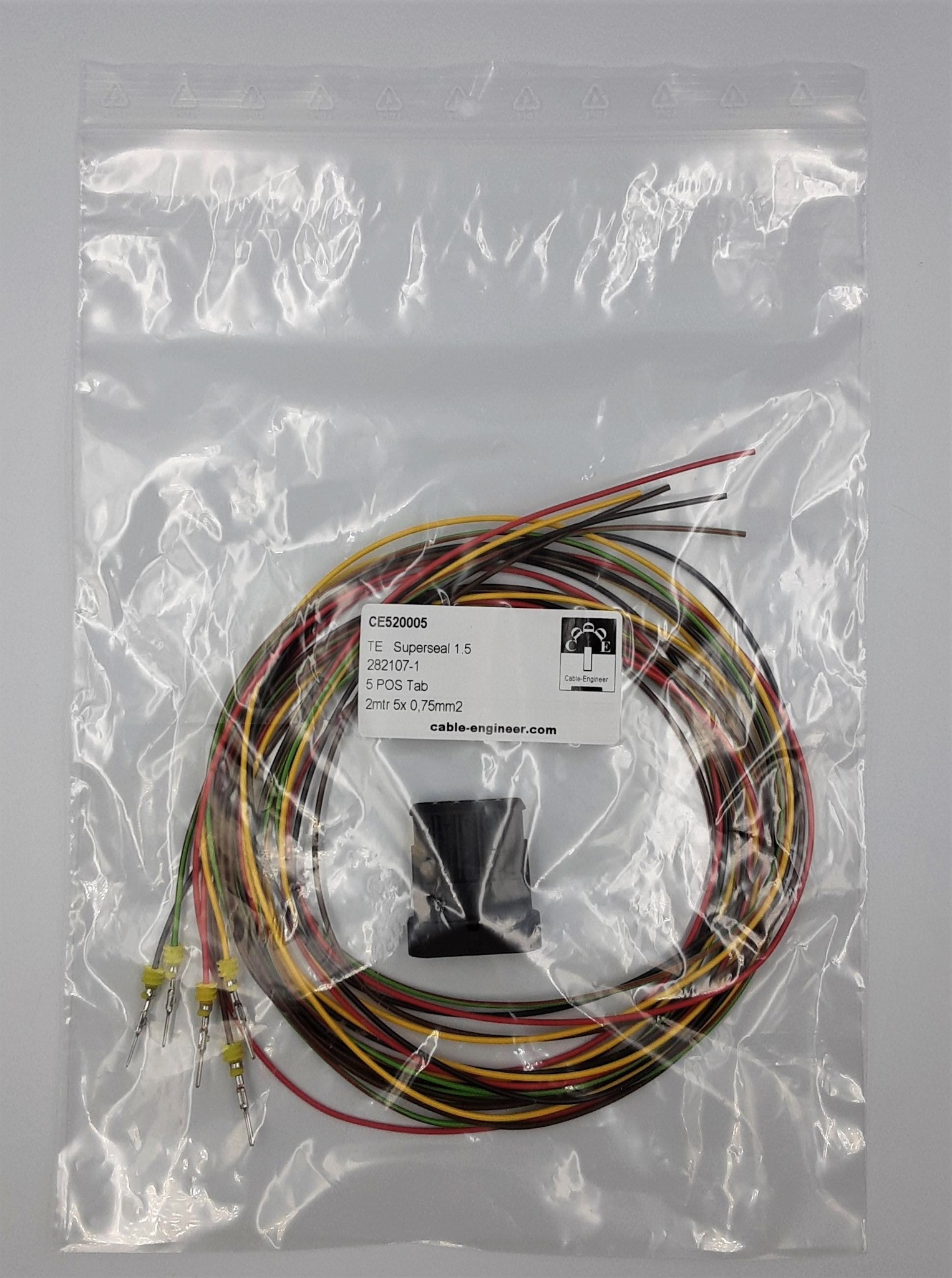 - 1x AMP Superseal 1.5 Tab (vrouw) 5-Pos. connector (TE pn: 282107-1)