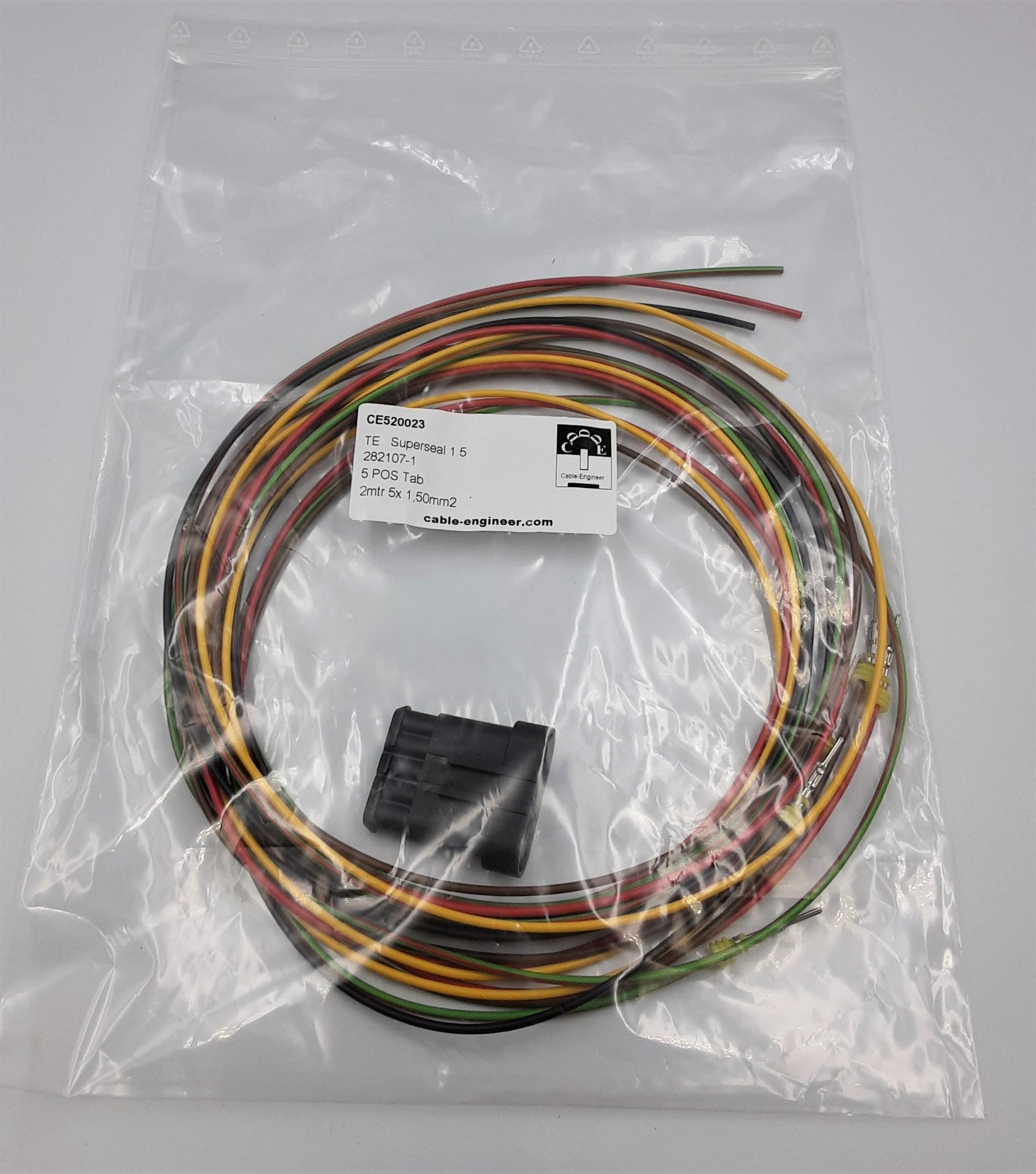 AMP Superseal 1.5 Pigtail-set: 5-Pos. Tab (vrouw) connector + 5x 2m. FLRY-B - 1,5mm2