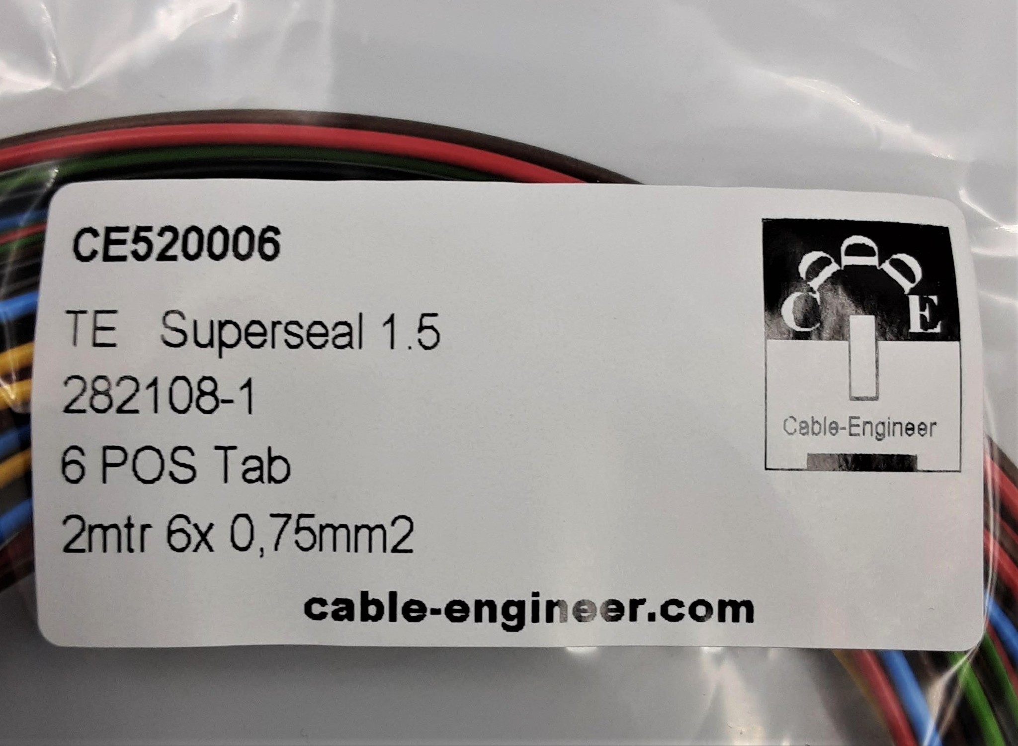 - 1x AMP Superseal 1.5 Tab (vrouw) 6-Pos. connector (TE pn: 282108-1)