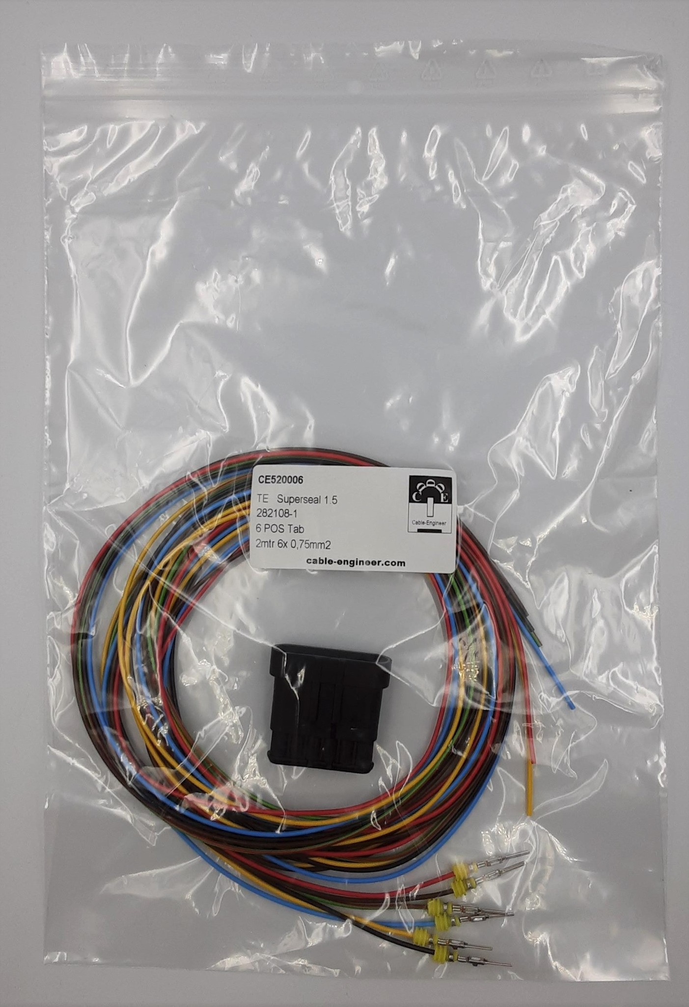 AMP Superseal 1.5 Pigtail-set met 6-Pos. Tab (vrouw) connector + 6x 2m. FLRY-B kabel 0,75mm2