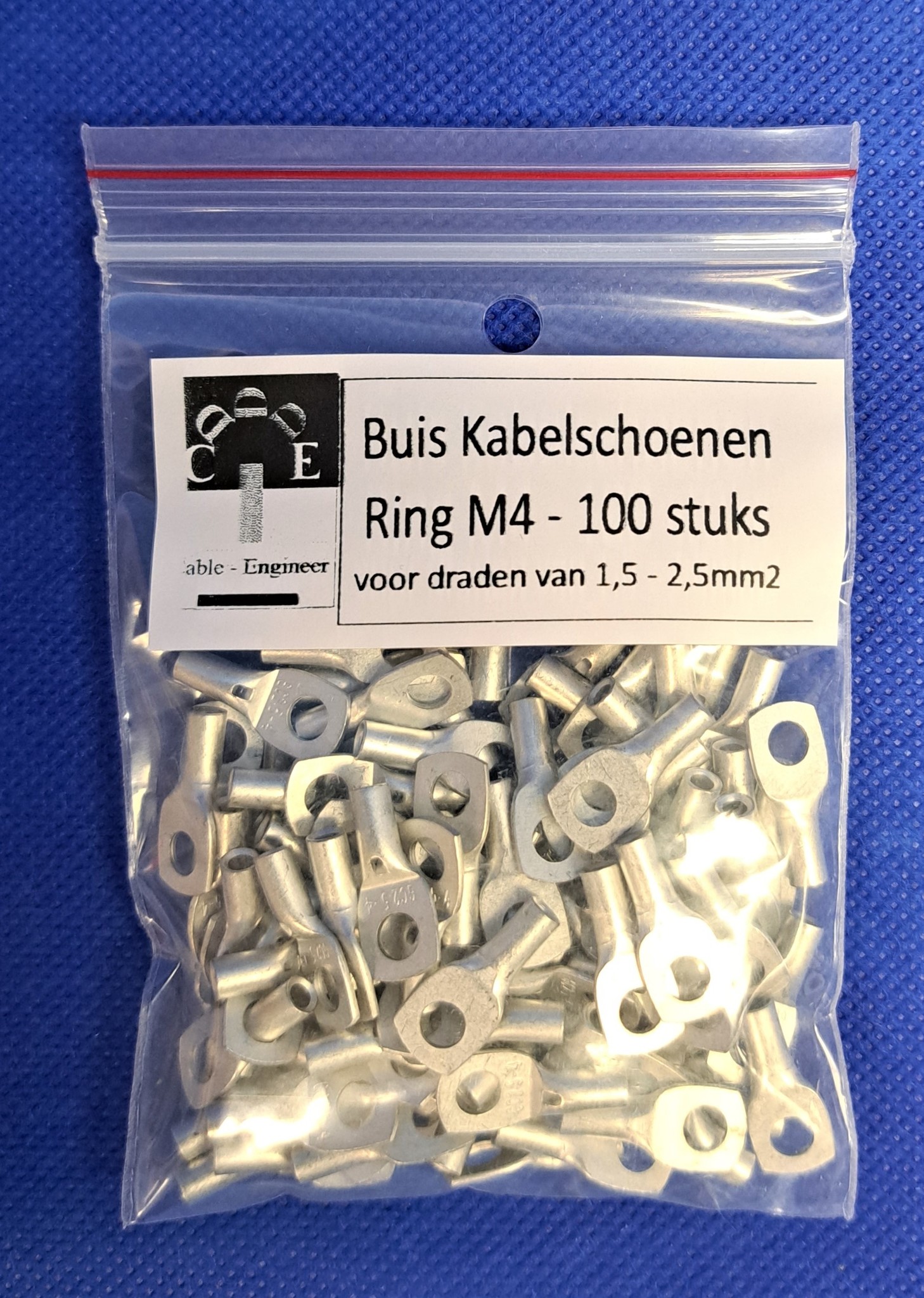 Buiskabelschoen / kabeloog Ring M4 met inspectie-gat voor draden van 1,5 - 2,5mm2 - 100 stuks