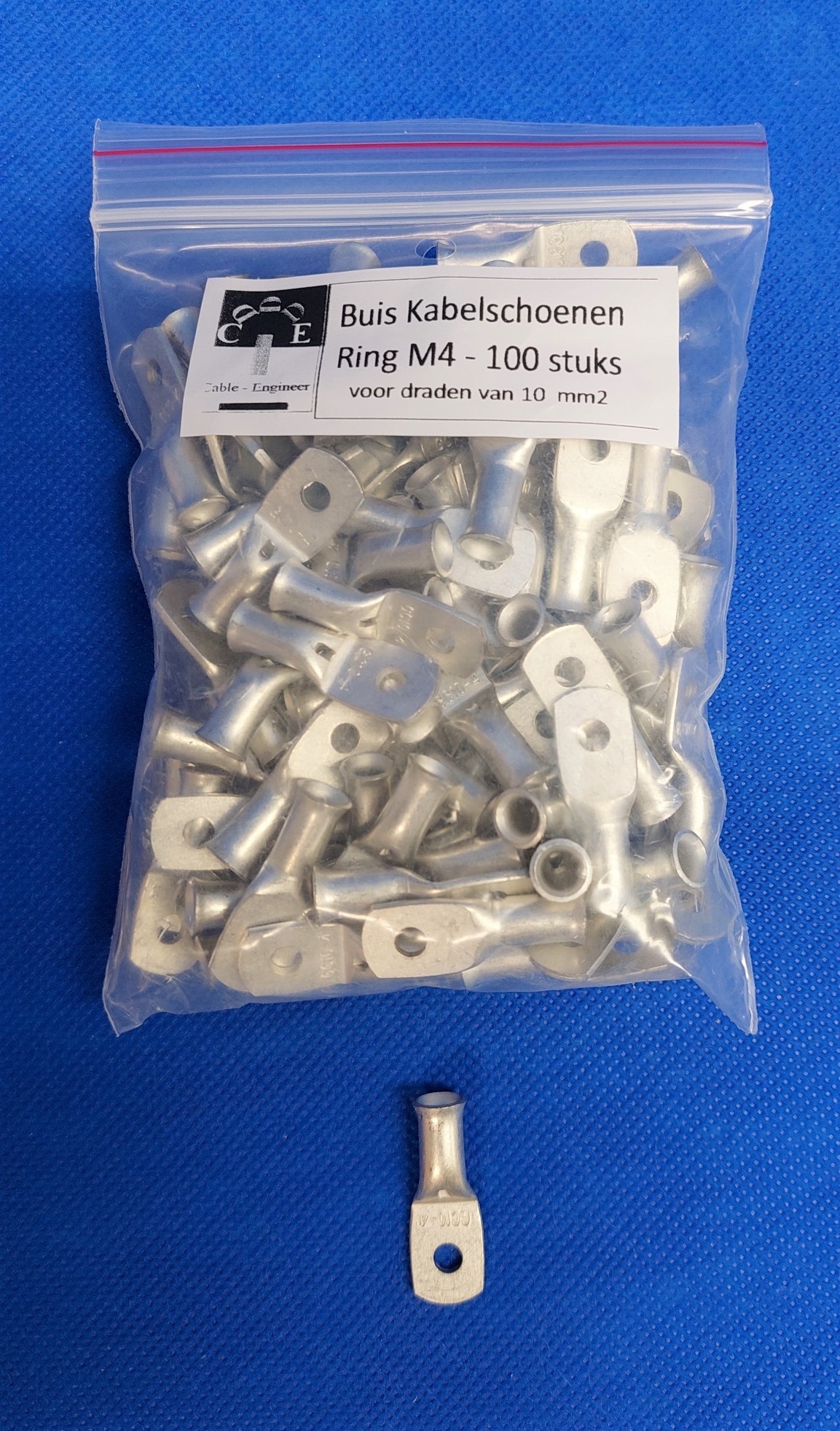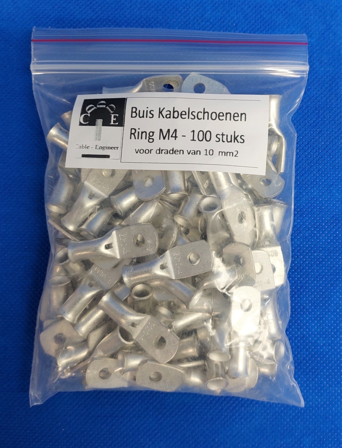 Buiskabelschoen/perskabelschoen / kabeloog M4 met inspectie-gat voor draden van 10,0mm2 - 100 stuks