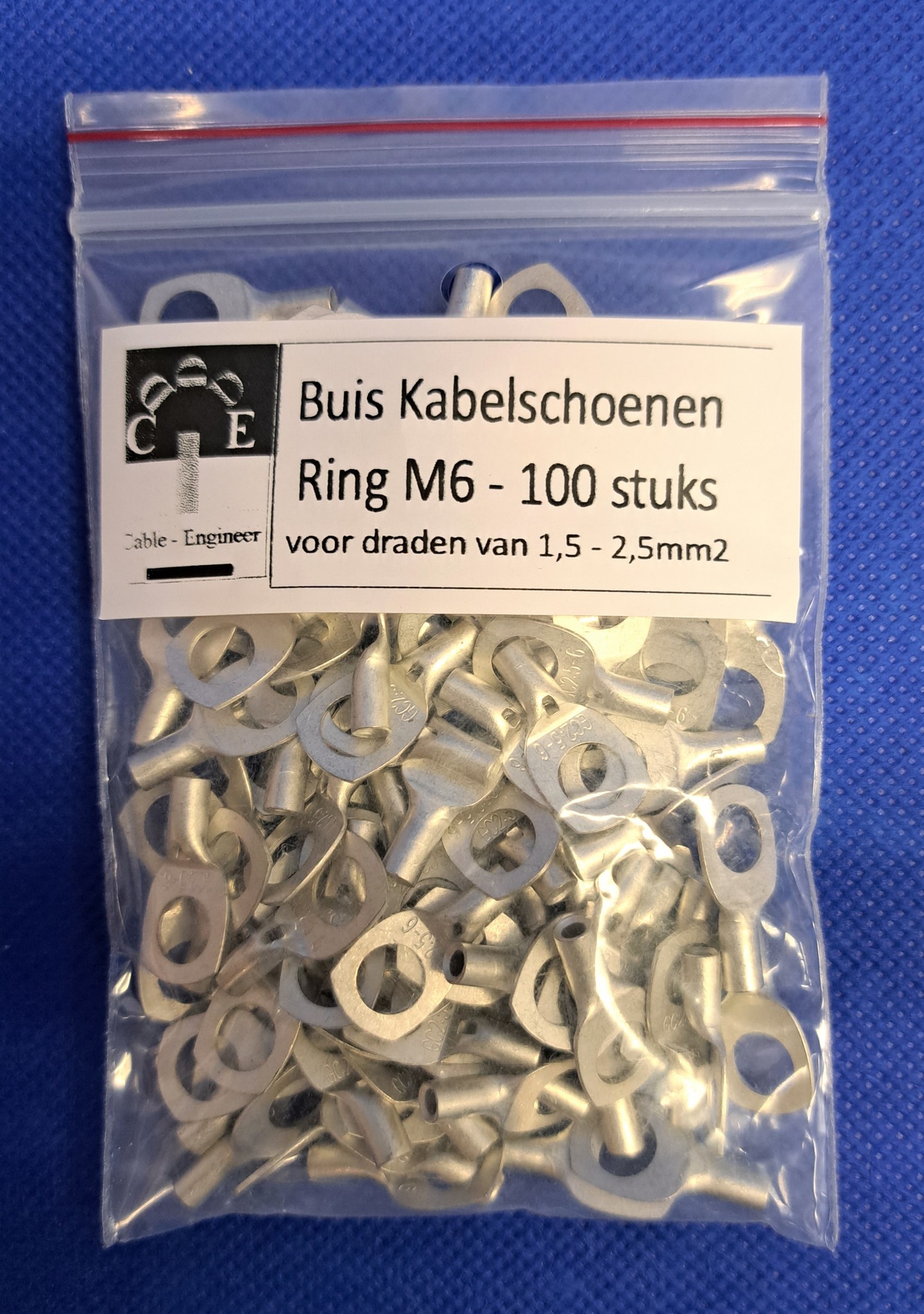 Buiskabelschoen / kabeloog M6 met inspectie-gat voor draden van 1,5 - 2,5mm2 - 100 stuks