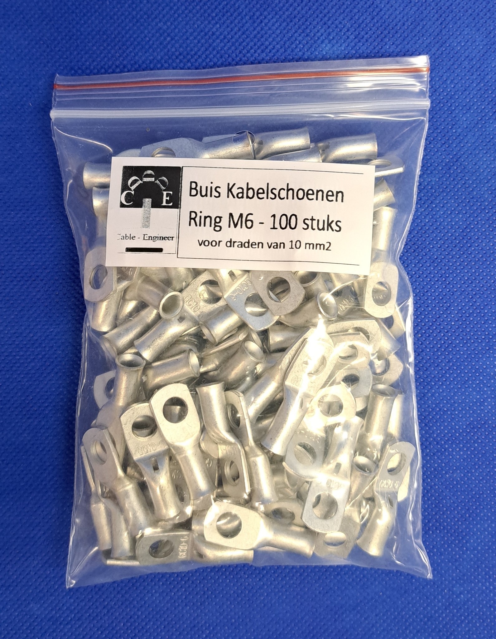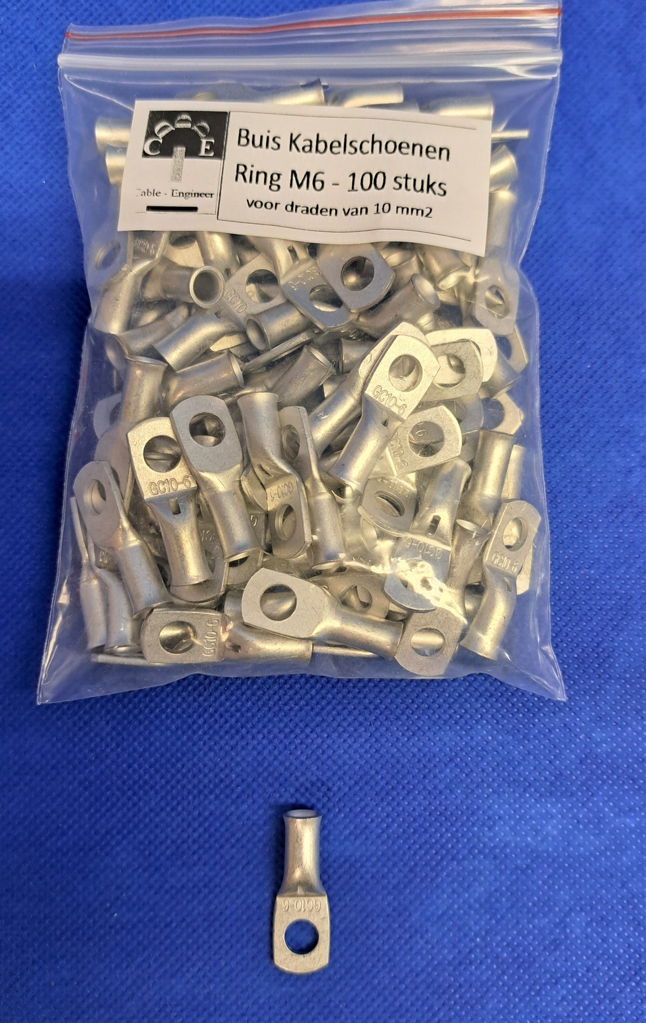 Buiskabelschoen/perskabelschoen / kabeloog Ring M6 met inspectie-gat voor draden van 10,0mm2 - 100 stuks