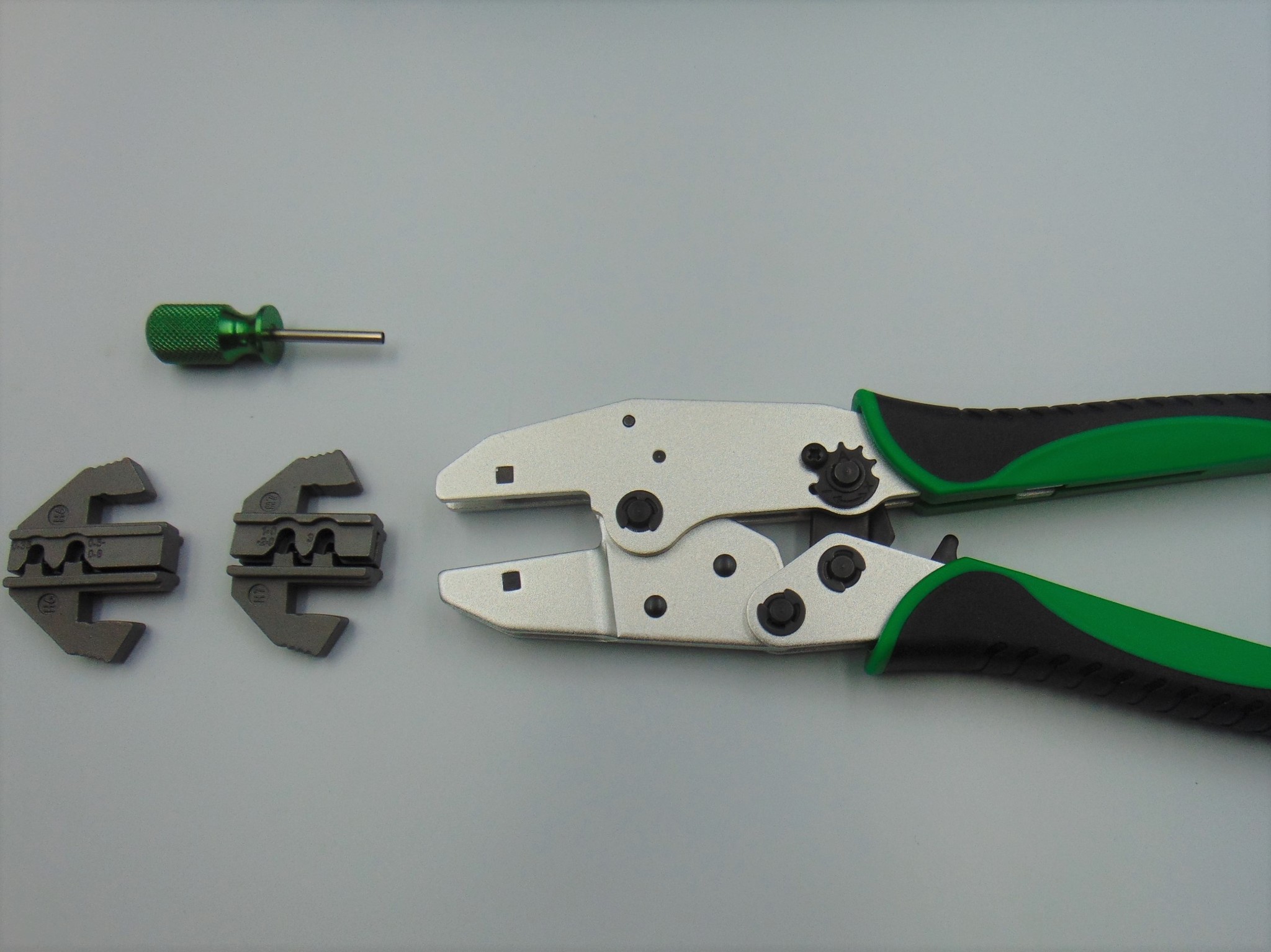 Complete kit met super handige en professionele krimptang. Deze tang is gemaakt van dik aluminium en daardoor zeer licht en erg sterk. Deze tang is door de verwisselbare inzetstukken aan te passen voor bijna alle gangbare connectoren en terminals (Delphi / AMP / Open-Barrel / geïsoleerde en niet-geïsoleerde kabelschoenen en nog veel meer)