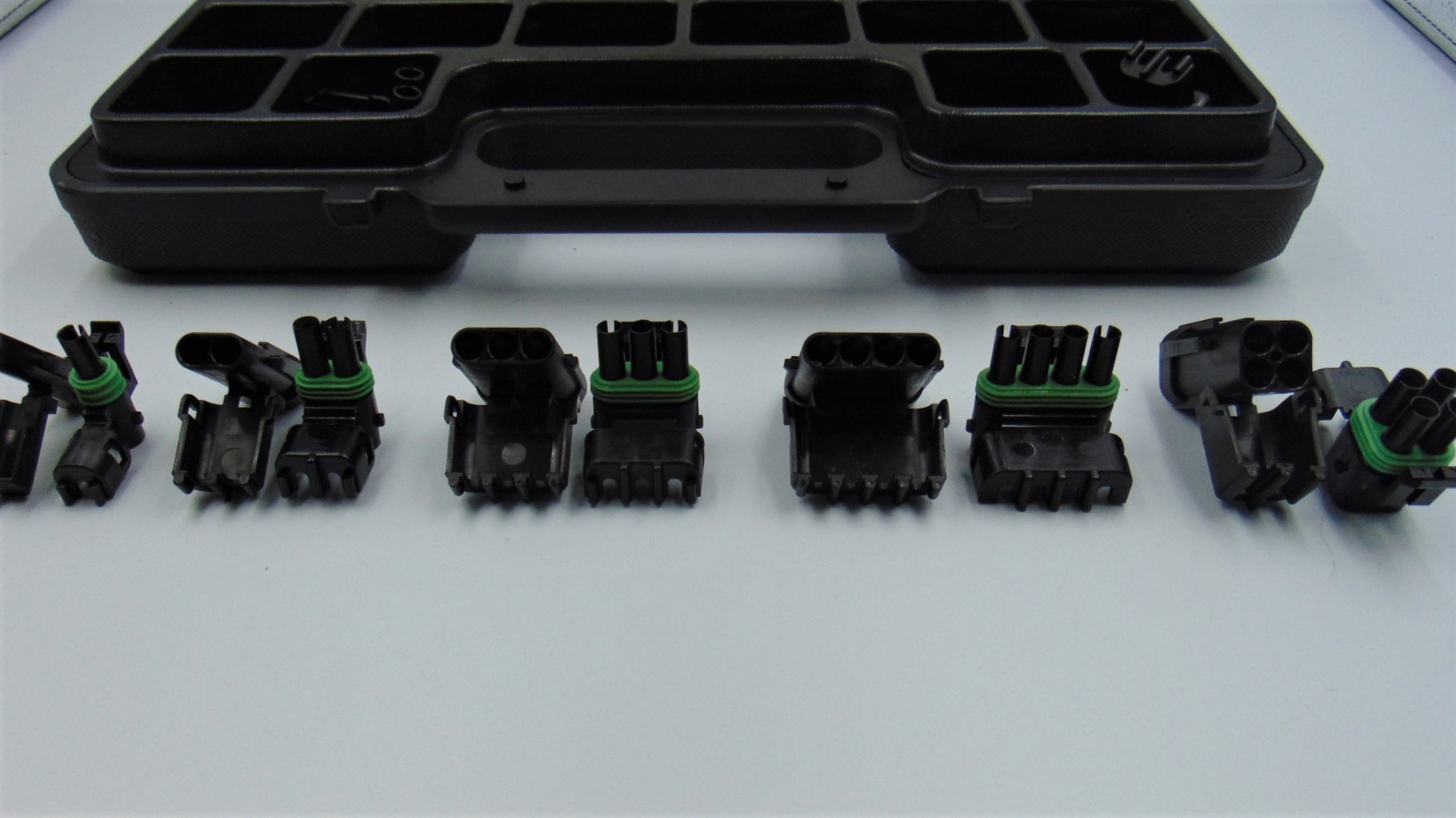 Deze connectoren zijn speciaal ontwikkeld voor extreme omstandigheden. Perfecte bescherming tegen stof, zand, modder, bijtende vloeistoffen en chemicaliën en zijn geschikt om te gebruiken bij temperaturen tussen -40 en +125°Celsius. Delphi Weatherpack Terminals worden veel gebruikt voor auto's, motoren, boten, tracktoren en meer.