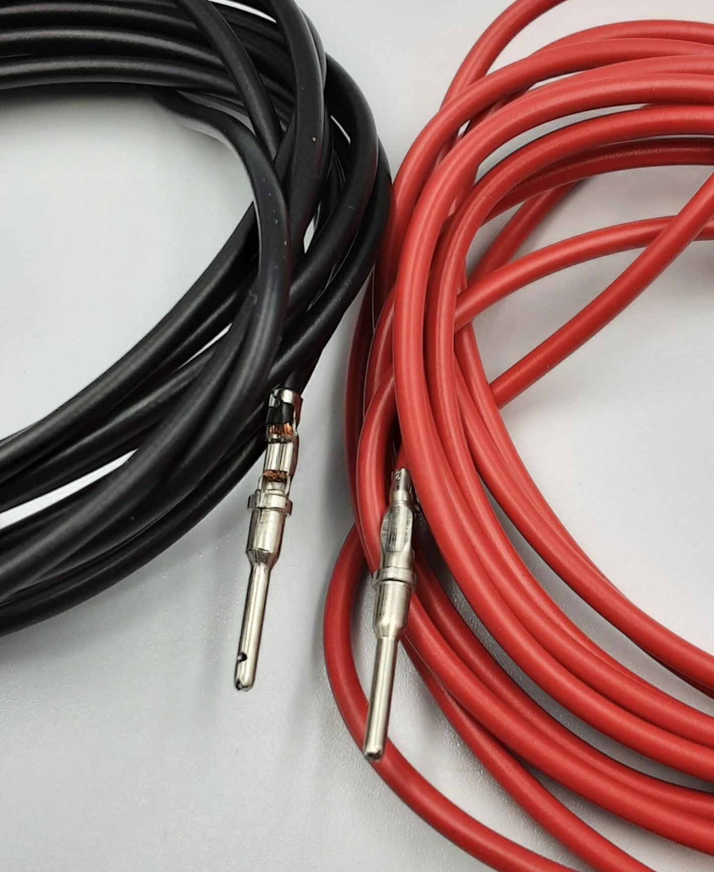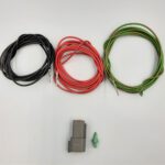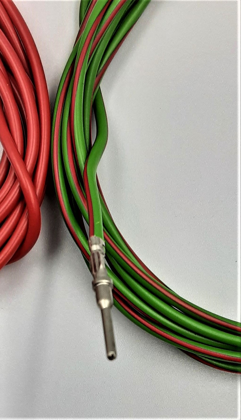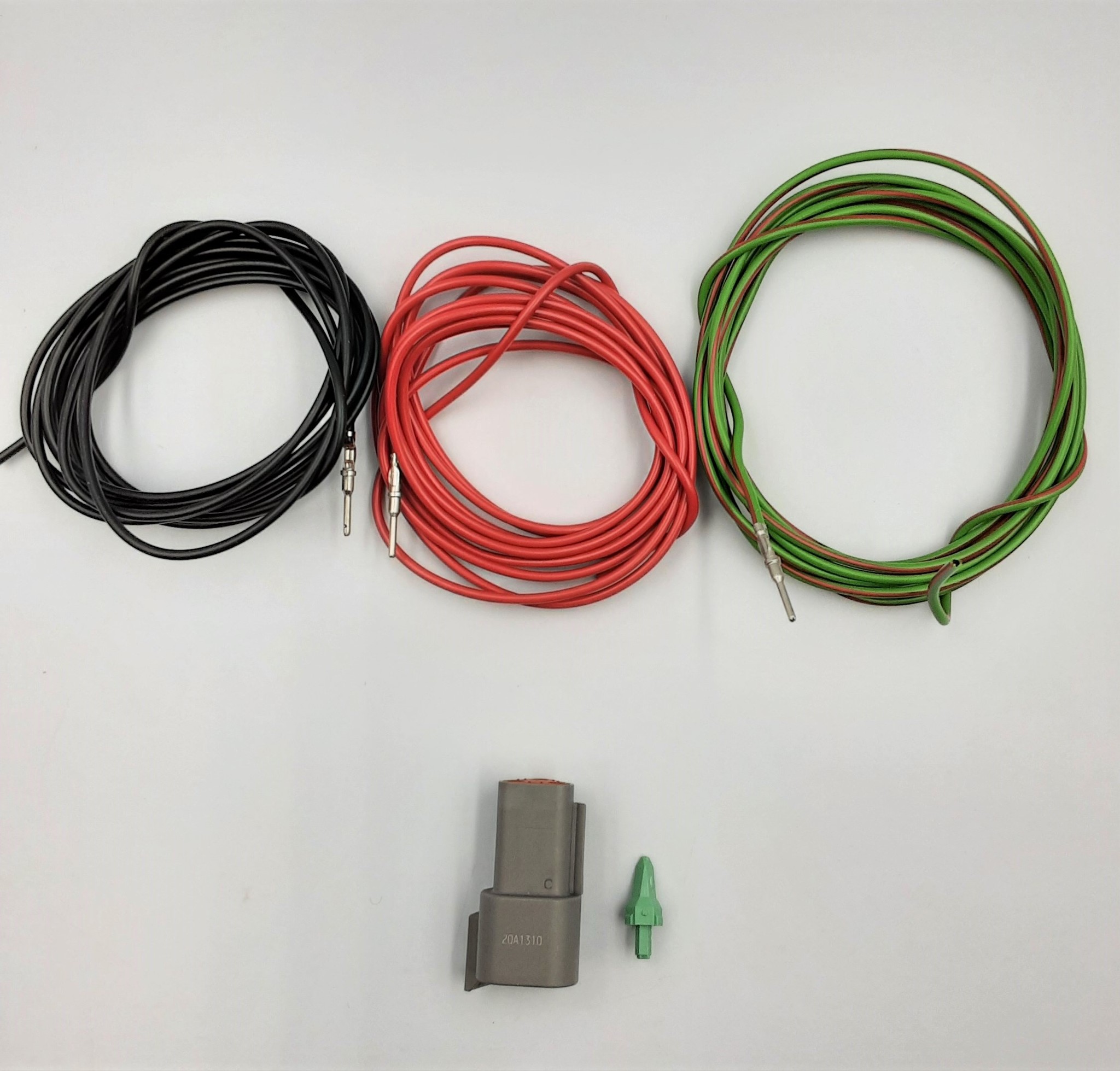 Complete Deutsch DT Pigtail-set met 3-Pos. Receptacle (vrouw) connector + 3x 2 meter FLRY-B kabel Ø 1,5mm in de kleuren Rood, Zwart en Rood-Groen met professioneel aangekrompen contacten en bijbehorende wedgelock voor het vastzetten en exact uitlijnen van de contacten in de behuizing.