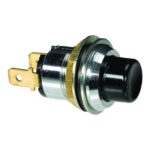Dashboardschakelaar met zwarte drukknop - 12 Volt/ 11 Ampère - Paneeldoorgang Ø 20 mm - schroefbevestiging M19 - ZZ-100 (Kan ook voor 24 Volt 2,5 Ampère worden gebruikt)