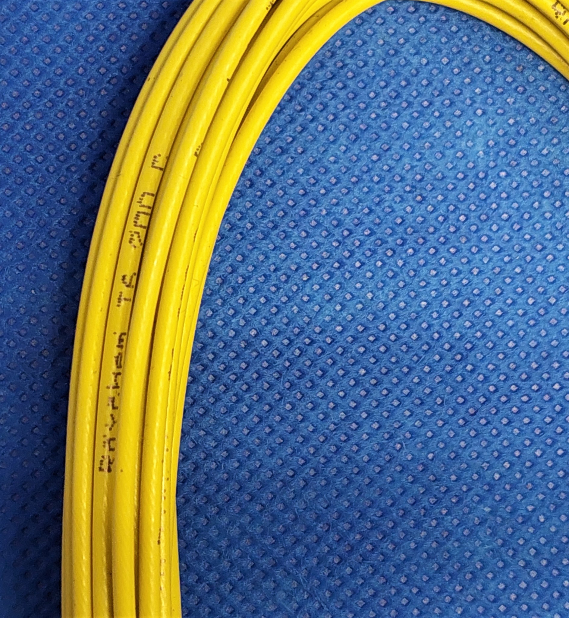Deze bijzondere en moeilijk verkrijgbare kabel is gemaakt van gemodificeerde ETFE (ethyleen-tetrafluorethyleen copolymeer) "Radiation Crosslinked Modified ETFE" om precies te zijn.