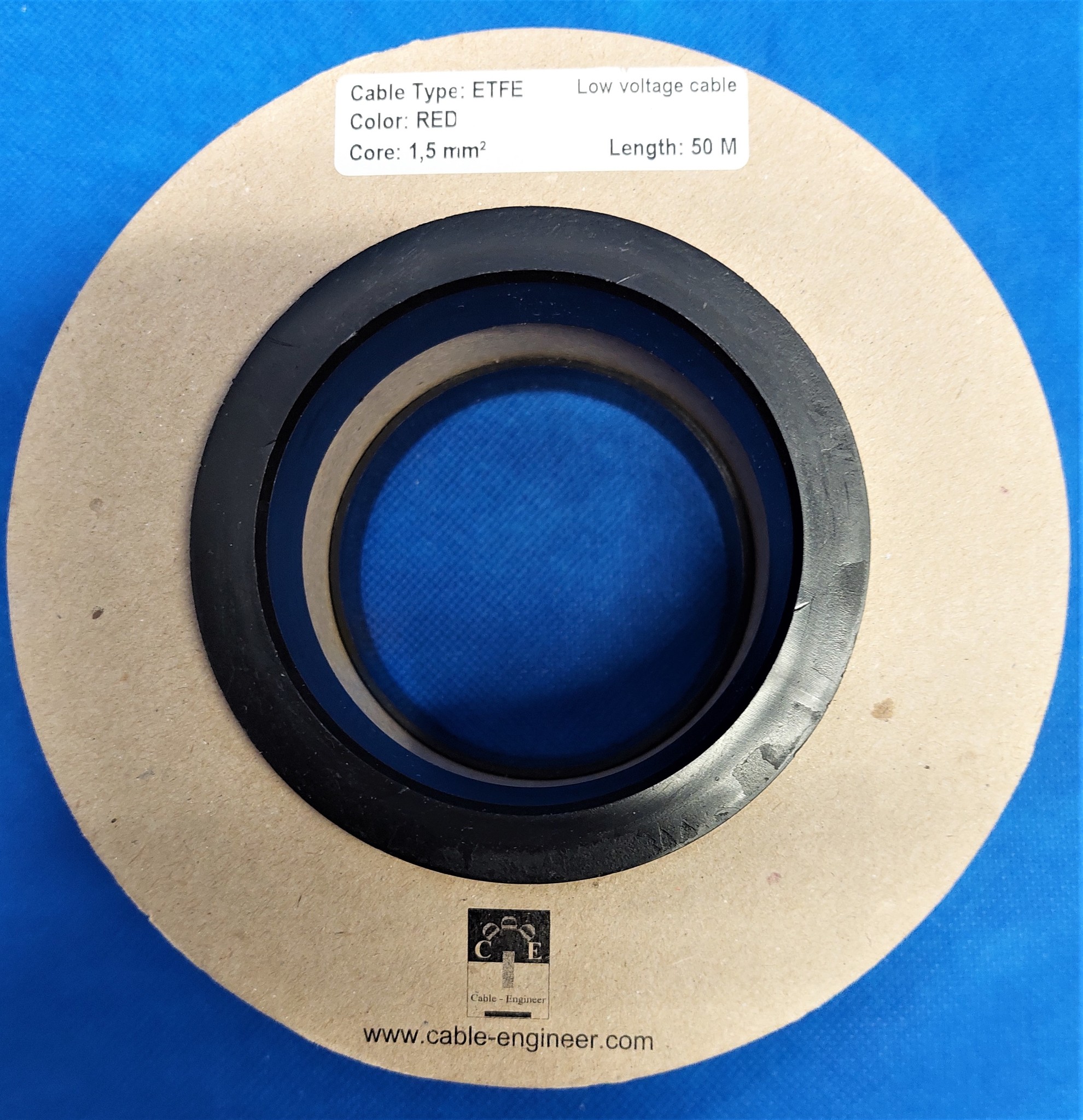 ETFE kabel van TE connectivity: Raychem T6 200°C - 1,5 mm2 (16AWG) Rood - 50 meter op rol. Laag Voltage (max. 50 Volt ) Automotive kabel.