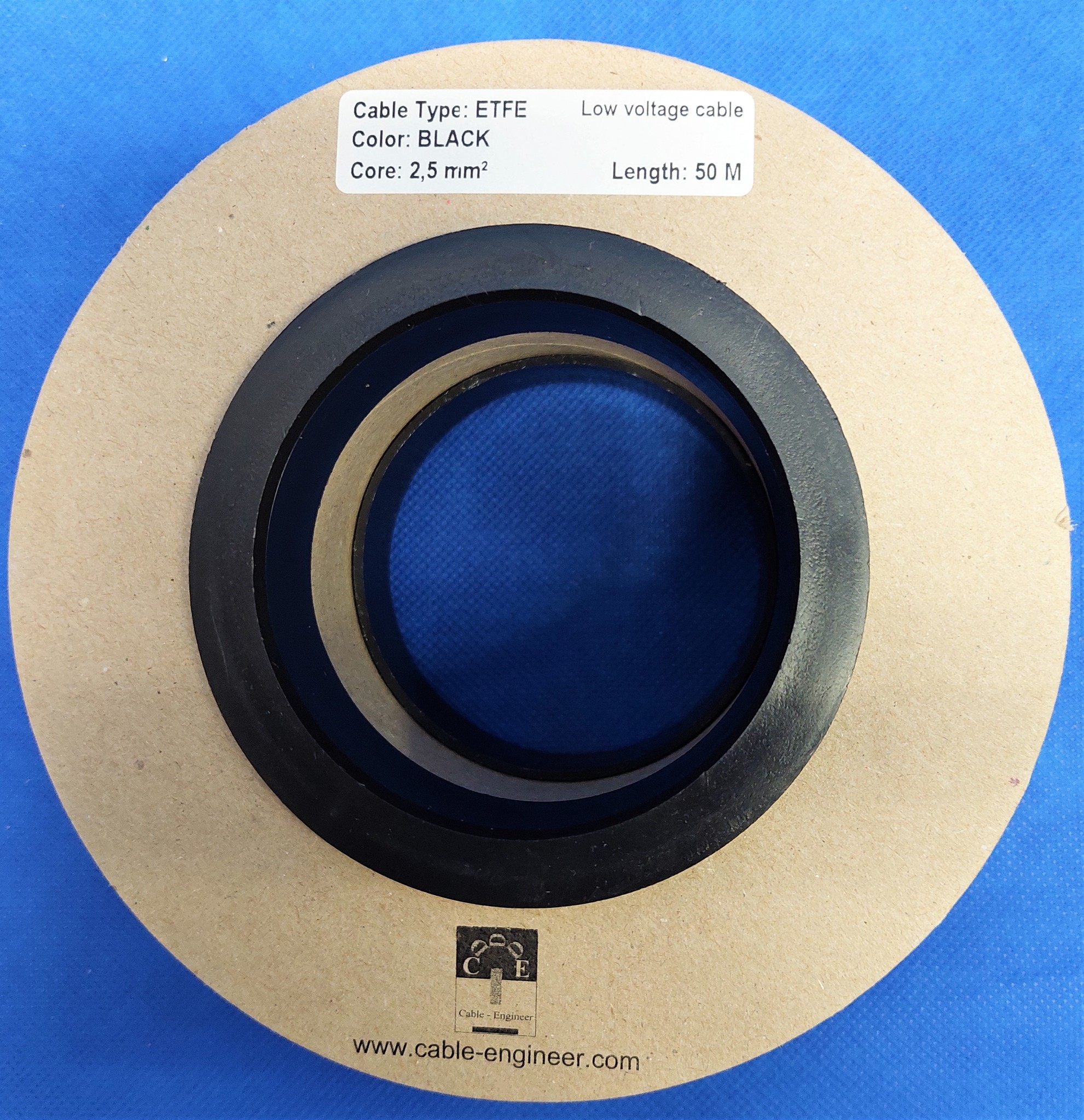 ETFE Kabel van TE: Raychem T6 200°C: 2,5 mm2 - Zwart - 50 meter op rol