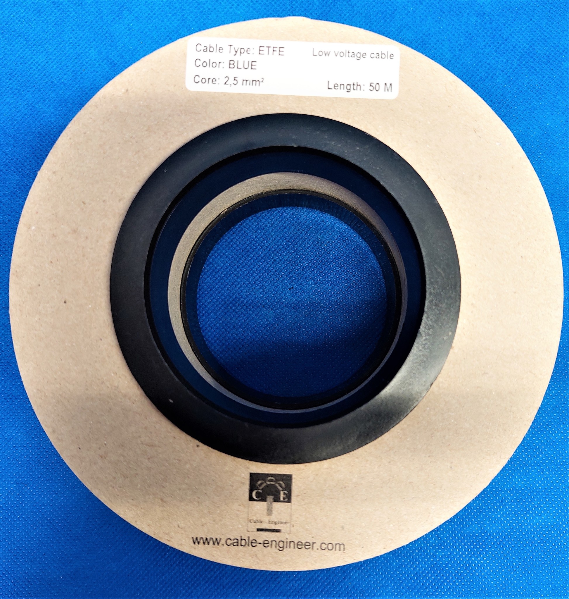 ETFE Kabel van TE: Raychem T6 200°C: 2,5 mm2 - Blauw - 50 meter op rol