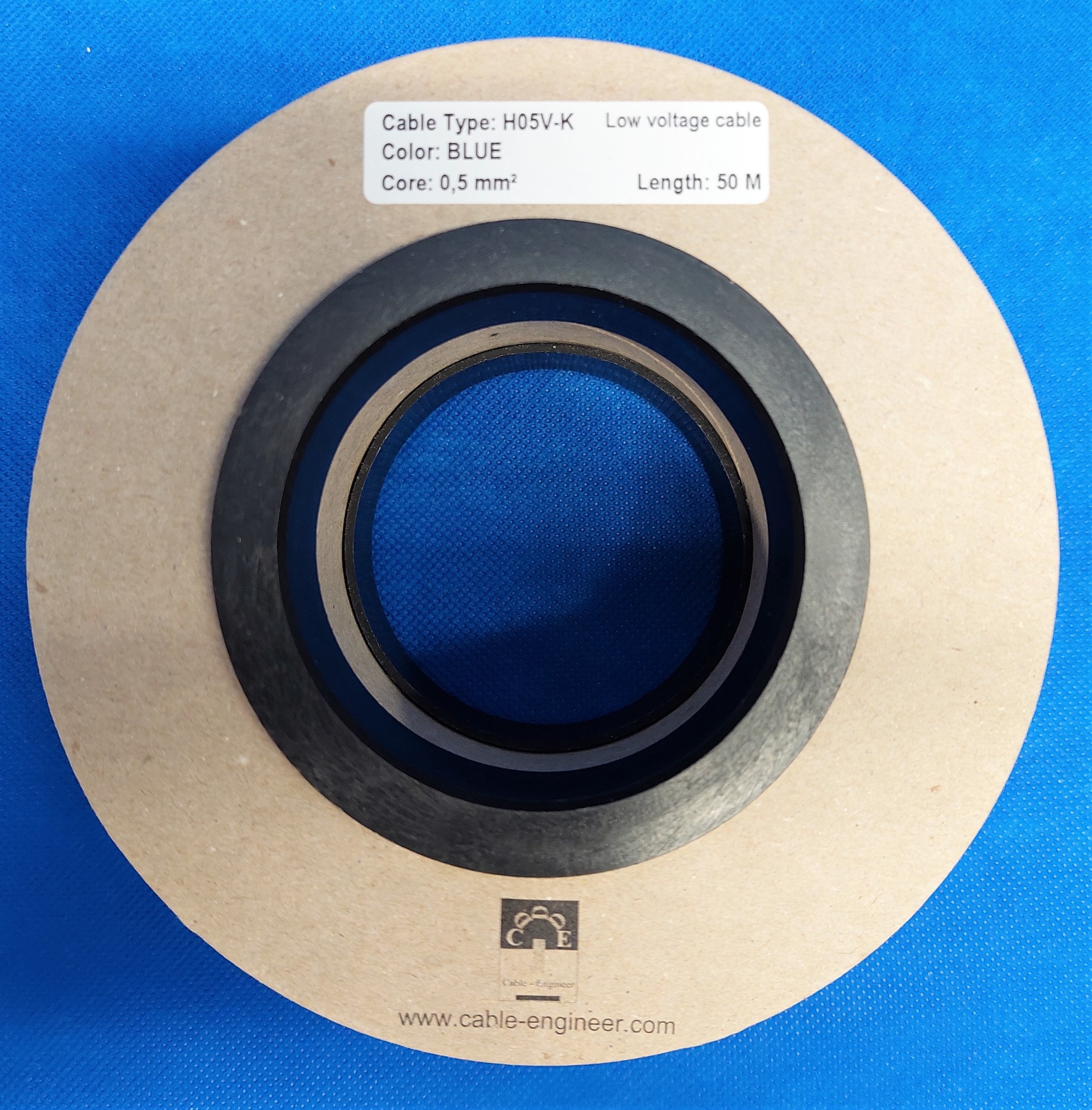 H05V-K montagesnoer van 0,50 mm2 in de kleur Blauw en op rol met 100 meter