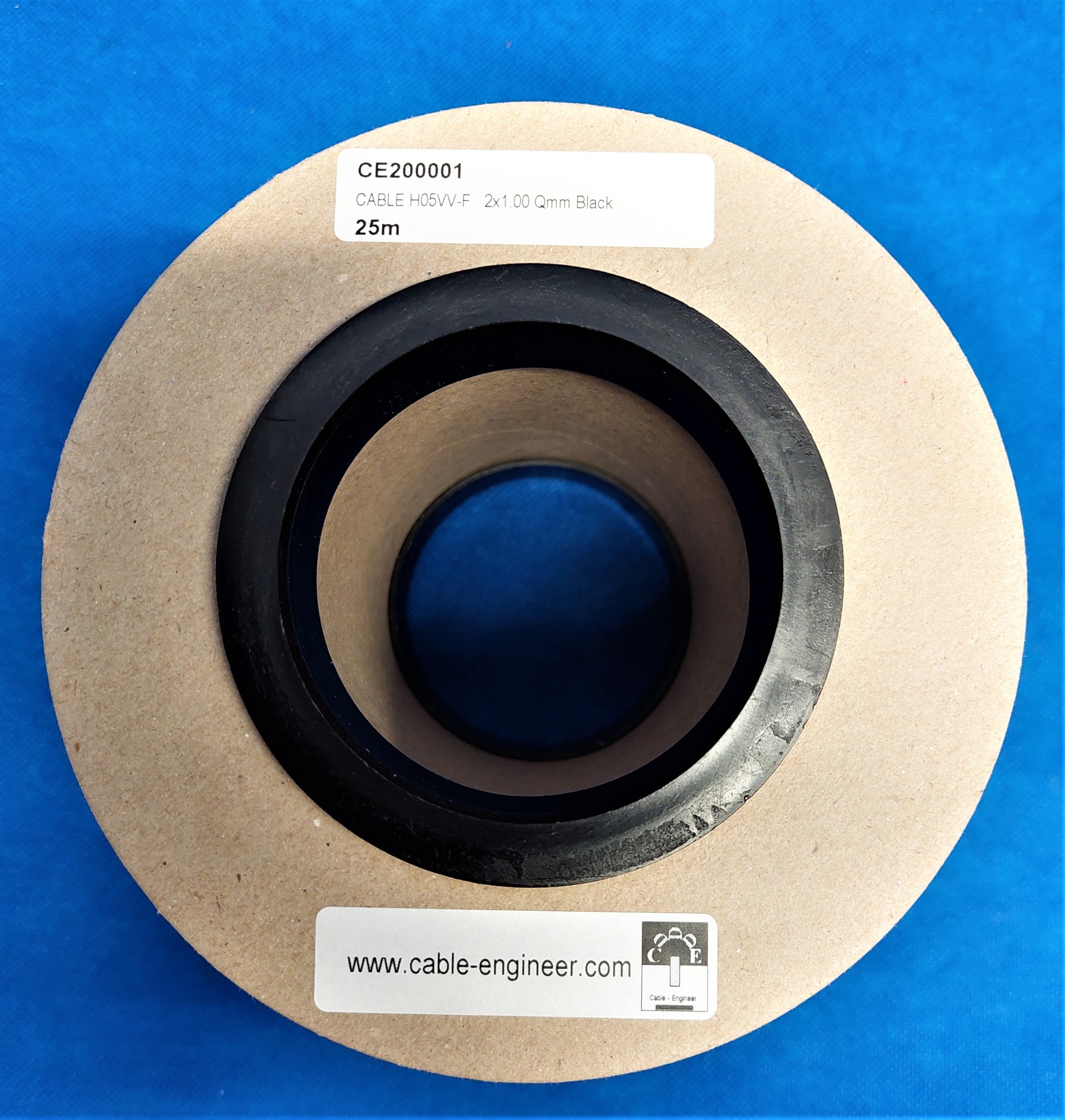 H05VV-F - 2x 1,0mm2 Zwart - 50 meter op rol