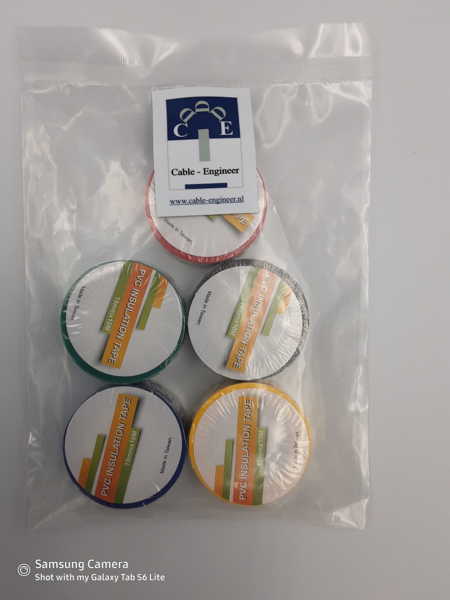 5 Rollen gekleurde isolatie of PVC tape van 19mm breed en 10meter lang