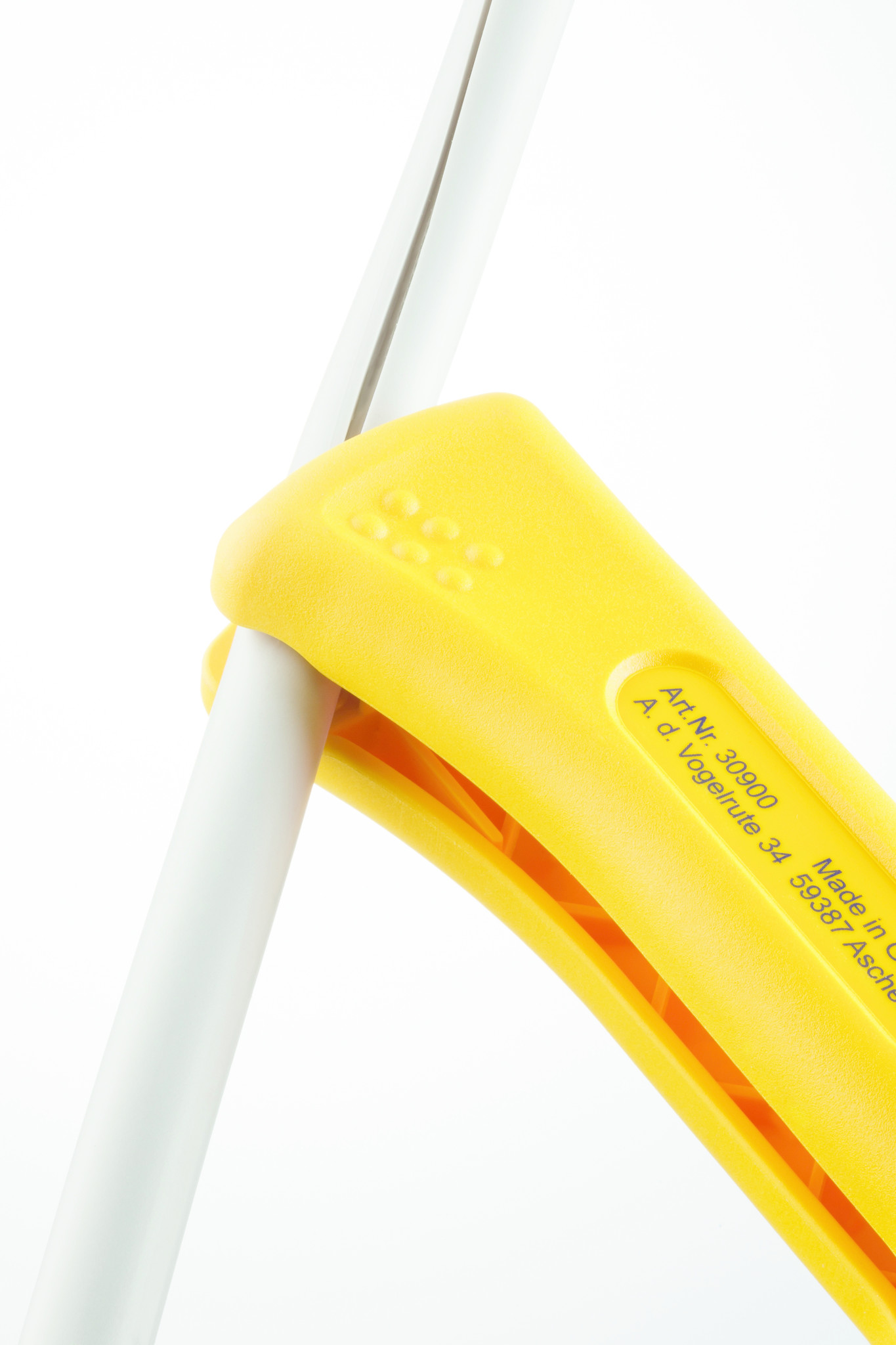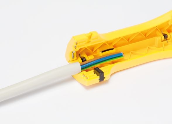 Door het handige ontwerp kan je eenvoudig grote lengtes in één keer ontmantelen. Dit gereedschap is ook uitgevoerd met een lengteaanslag voor het seriematig strippen en ontmantelen op exact dezelfde lengte.