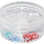 Handige strooidoos van Knipex met een assortiment van 150 geïsoleerde adereindhulzen in de onderstaande maten: