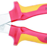 De handvaten die vaak benen worden genoemd zijn van het bekende 2-kleurige VDE-KNIPEX kunststof en dat voelt altijd lekker aan en geeft uitstekende grip en natuurlijk VDE goedgekeurd dus veilig tot minimaal 1000V.