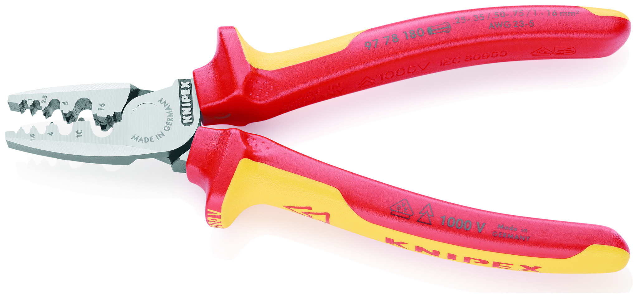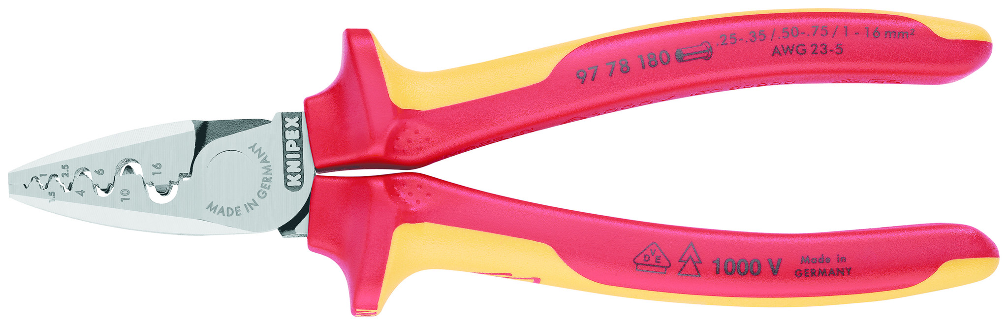 Krimptang voor adereindhulzen - 0,25 t/m 16mm2 - VDE-Gekeurd 97 78 180
