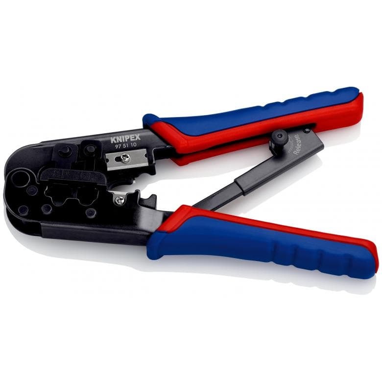 Knipex 97 51 10: Krimp, strip en kniptang voor krimpen modulaire Western stekkers/plugs RJ11/RJ12 en RJ45 ( 6 en 8-polige) en het strippen en knippex van ronde en platte telefoonkabels (unshielded)