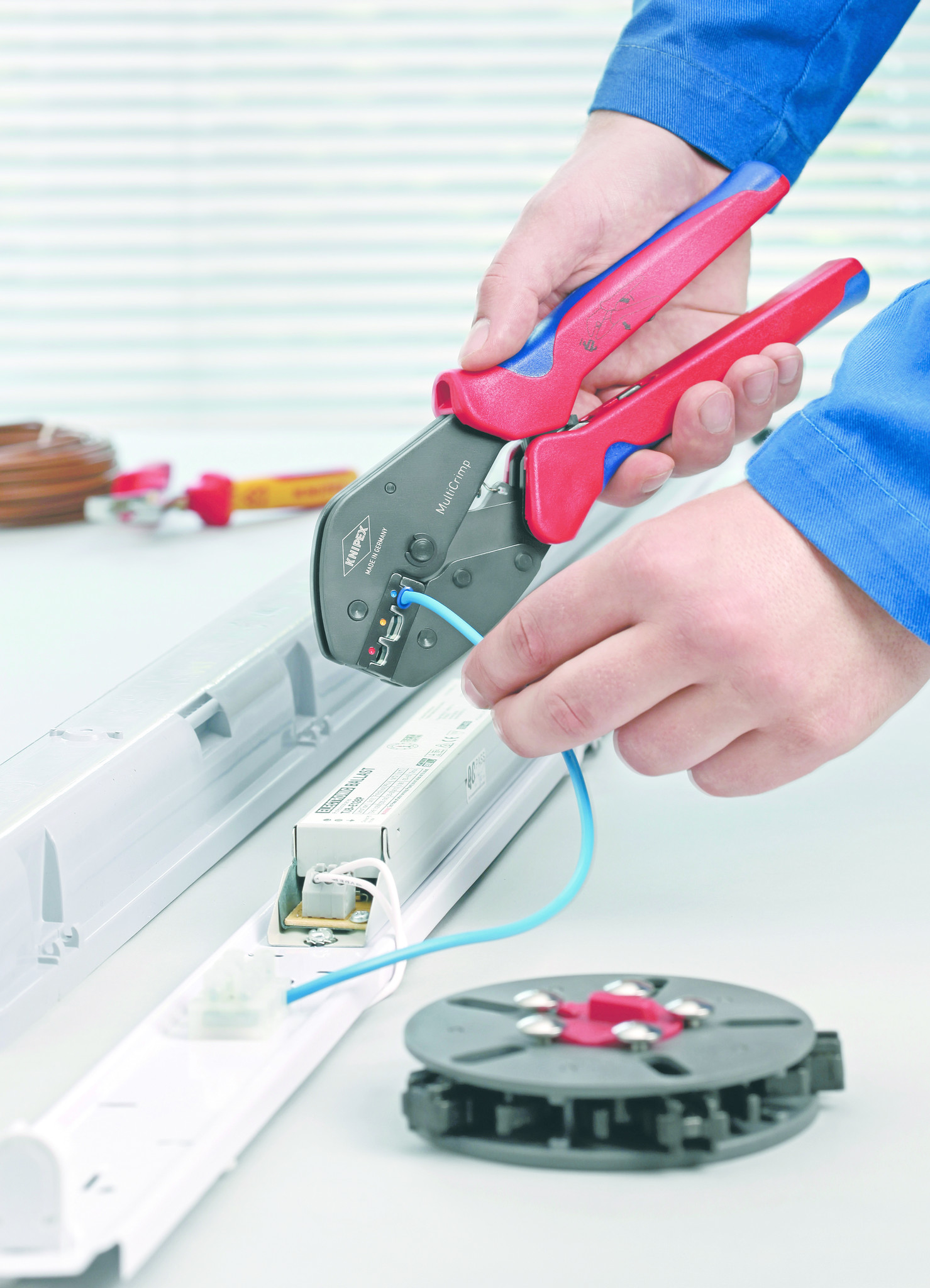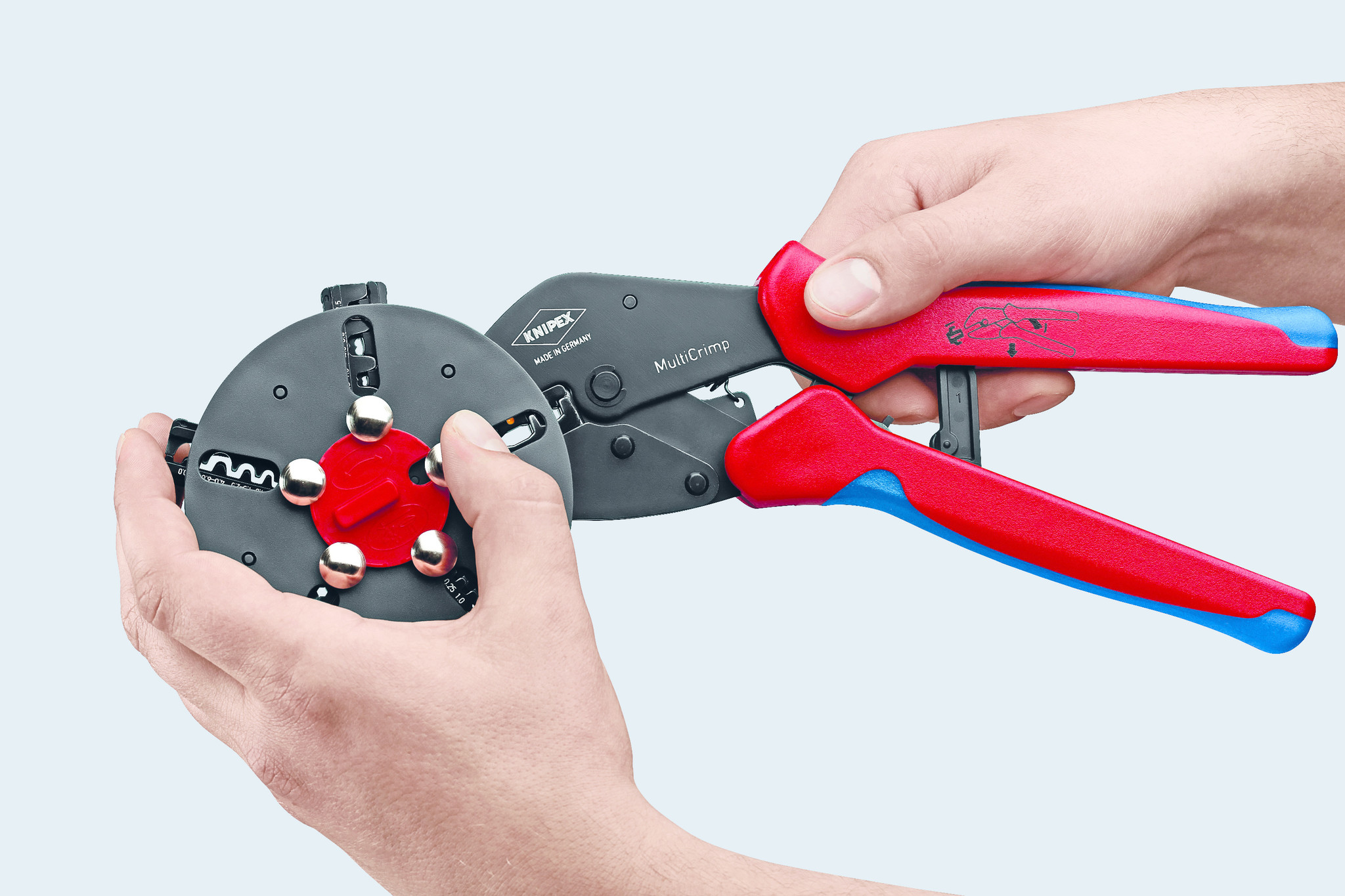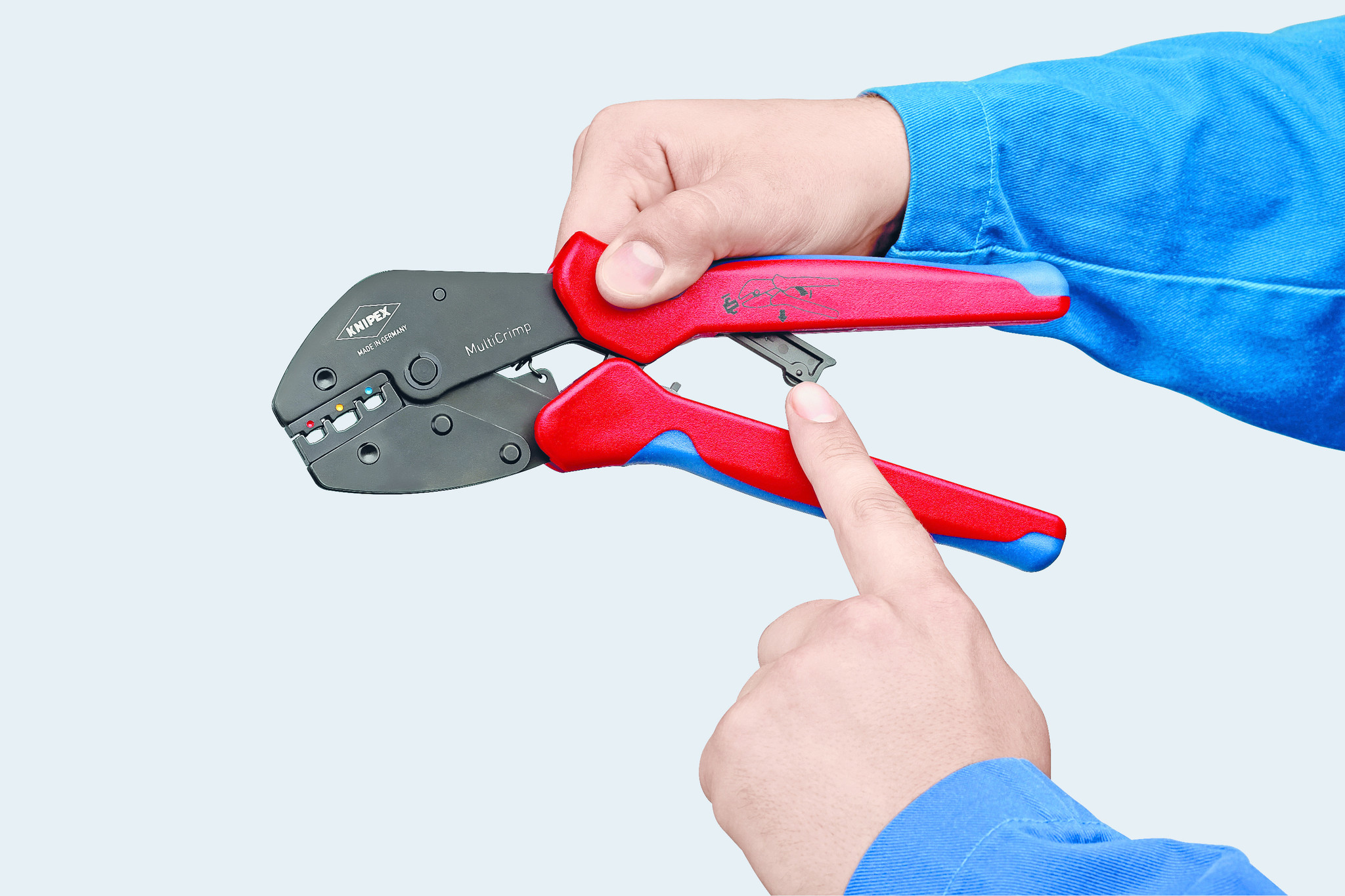 Door de precisieprofielen en de nauwkeurig gekalibreerde krimpdruk, ben je verzekerd van een constant hoge krimpkwaliteit. De ergonomisch gevormde, tweekleurige meer-componentengrepen zorgen ervoor dat de tang eenvoudig met één of twee handen is te bedienen. De krimpprofielen zijn uiterst eenvoudig en snel te verwisselen zonder bijkomend gereedschap.